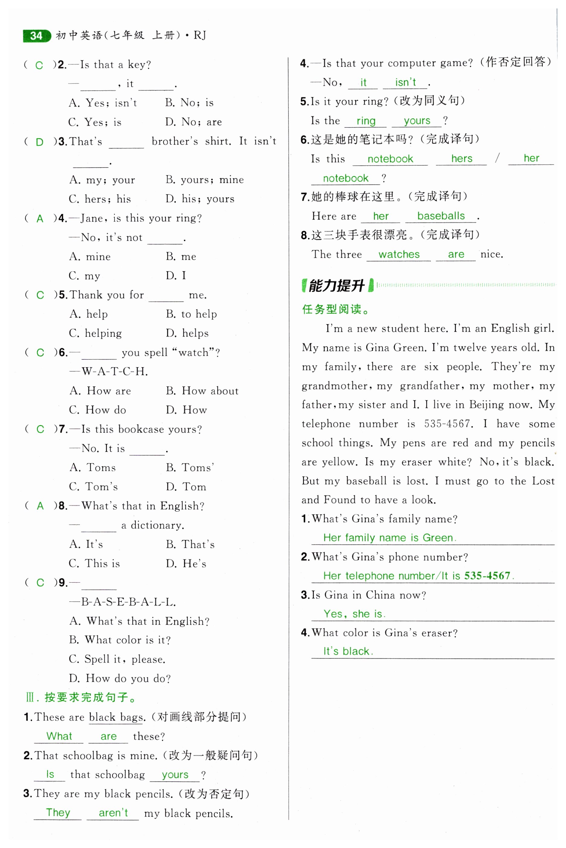 注:目前有些书本章节名称可能整理的还不是很完善,但都是按照顺序排列的,请同学们按照顺序仔细查找。练习册 2023年名校零距离七年级英语上册人教版 答案主要是用来给同学们做完题方便对答案用的,请勿直接抄袭。