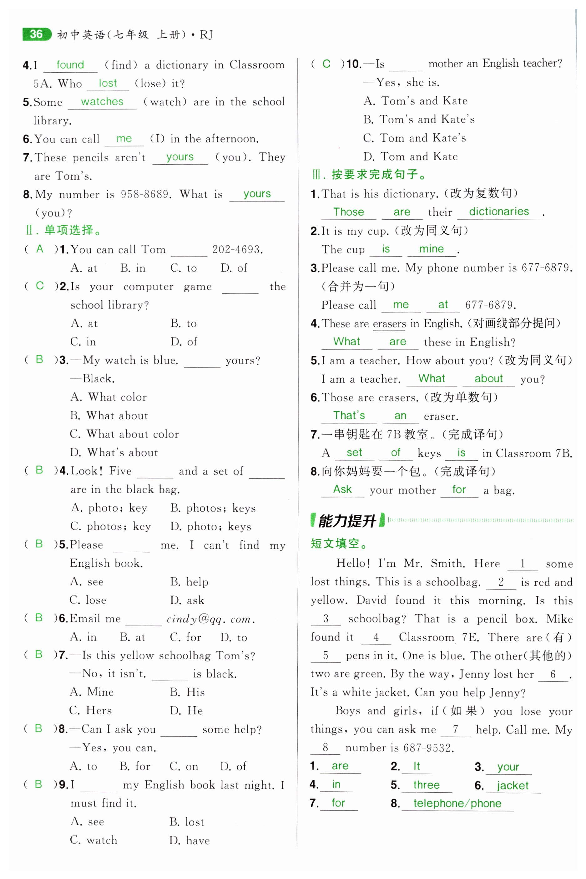 注:目前有些书本章节名称可能整理的还不是很完善,但都是按照顺序排列的,请同学们按照顺序仔细查找。练习册 2023年名校零距离七年级英语上册人教版 答案主要是用来给同学们做完题方便对答案用的,请勿直接抄袭。