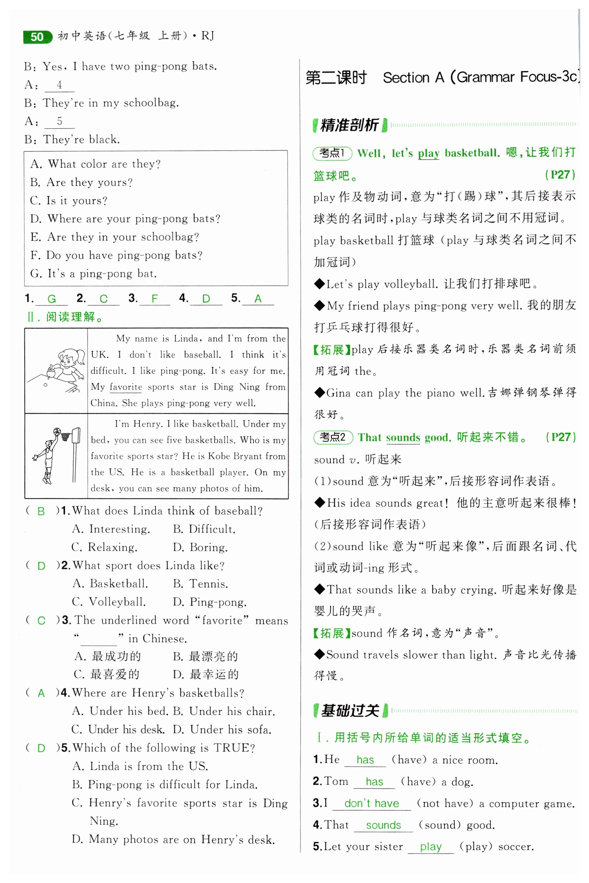 注:目前有些书本章节名称可能整理的还不是很完善,但都是按照顺序排列的,请同学们按照顺序仔细查找。练习册 2023年名校零距离七年级英语上册人教版 答案主要是用来给同学们做完题方便对答案用的,请勿直接抄袭。