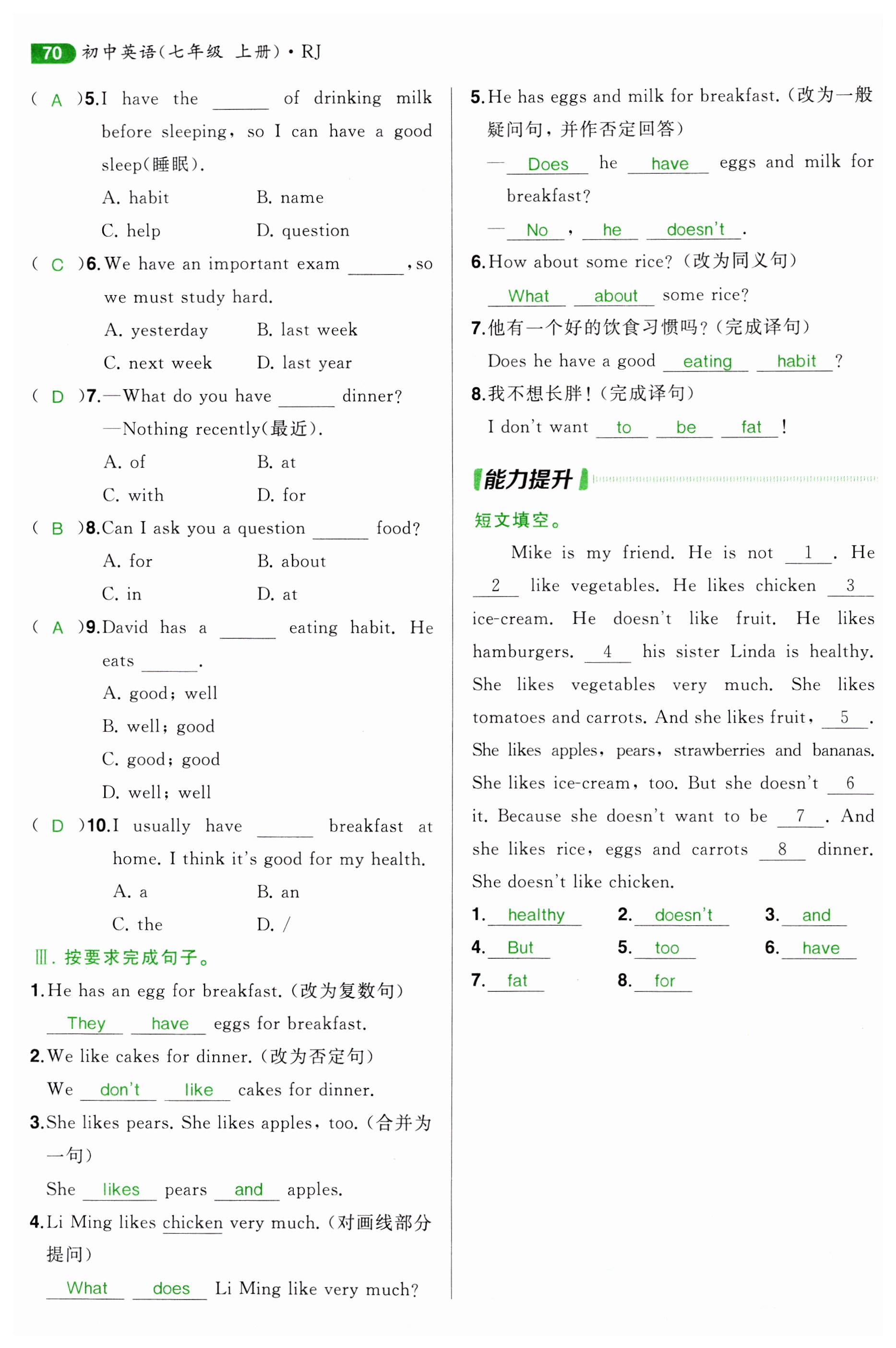 注:目前有些书本章节名称可能整理的还不是很完善,但都是按照顺序排列的,请同学们按照顺序仔细查找。练习册 2023年名校零距离七年级英语上册人教版 答案主要是用来给同学们做完题方便对答案用的,请勿直接抄袭。