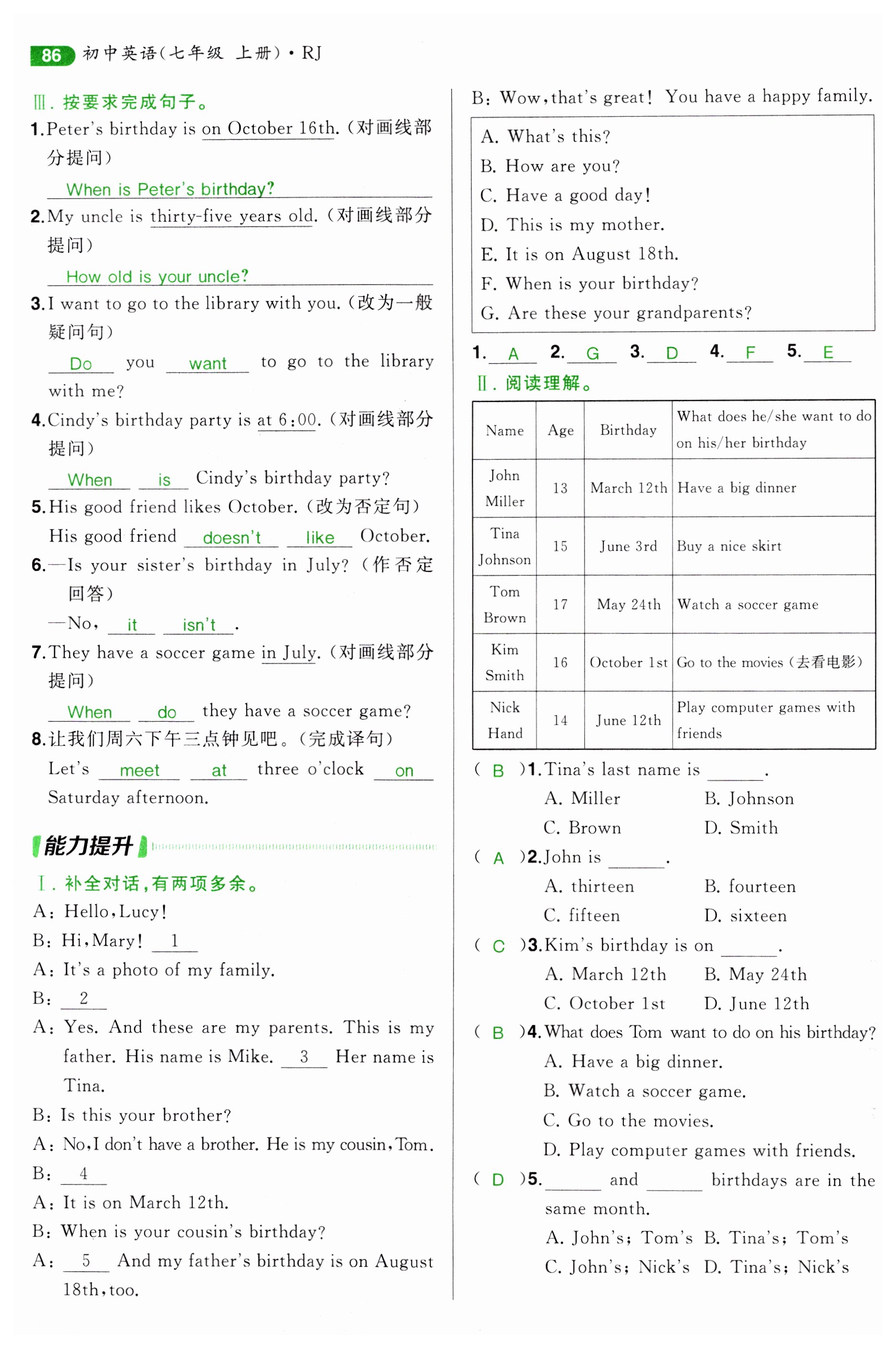 注:目前有些书本章节名称可能整理的还不是很完善,但都是按照顺序排列的,请同学们按照顺序仔细查找。练习册 2023年名校零距离七年级英语上册人教版 答案主要是用来给同学们做完题方便对答案用的,请勿直接抄袭。