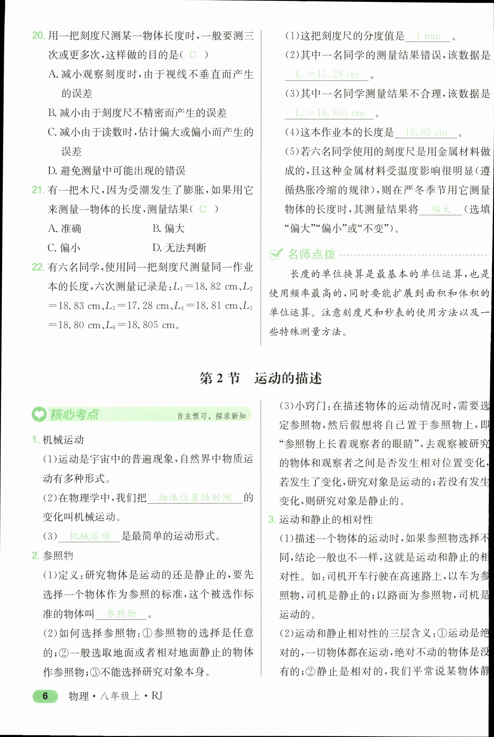 注:目前有些书本章节名称可能整理的还不是很完善,但都是按照顺序排列的,请同学们按照顺序仔细查找。练习册 2023年名师课时计划八年级物理上册人教版 答案主要是用来给同学们做完题方便对答案用的,请勿直接抄袭。