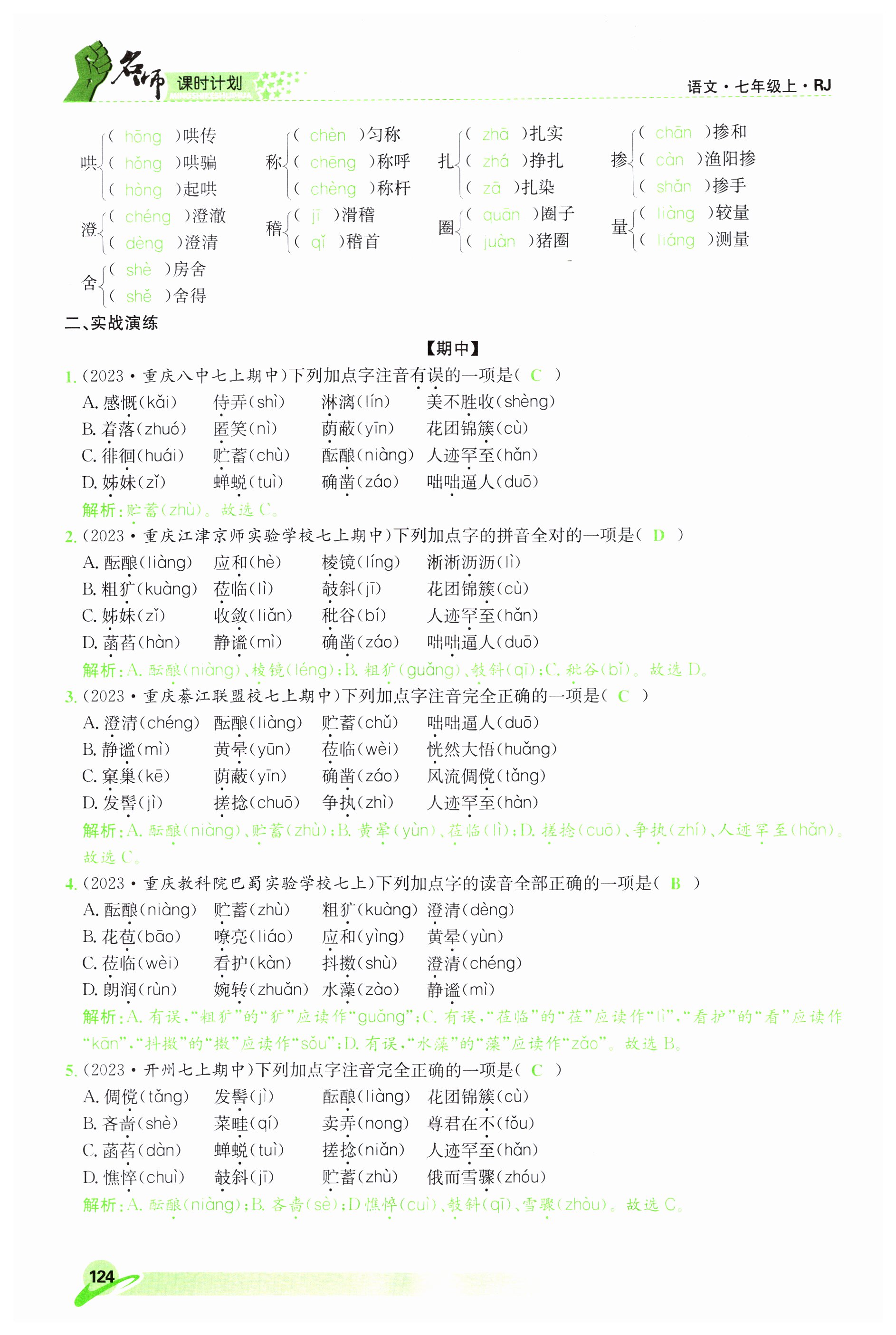 注:目前有些书本章节名称可能整理的还不是很完善,但都是按照顺序排列的,请同学们按照顺序仔细查找。练习册 2023年名师课时计划七年级语文上册人教版 答案主要是用来给同学们做完题方便对答案用的,请勿直接抄袭。