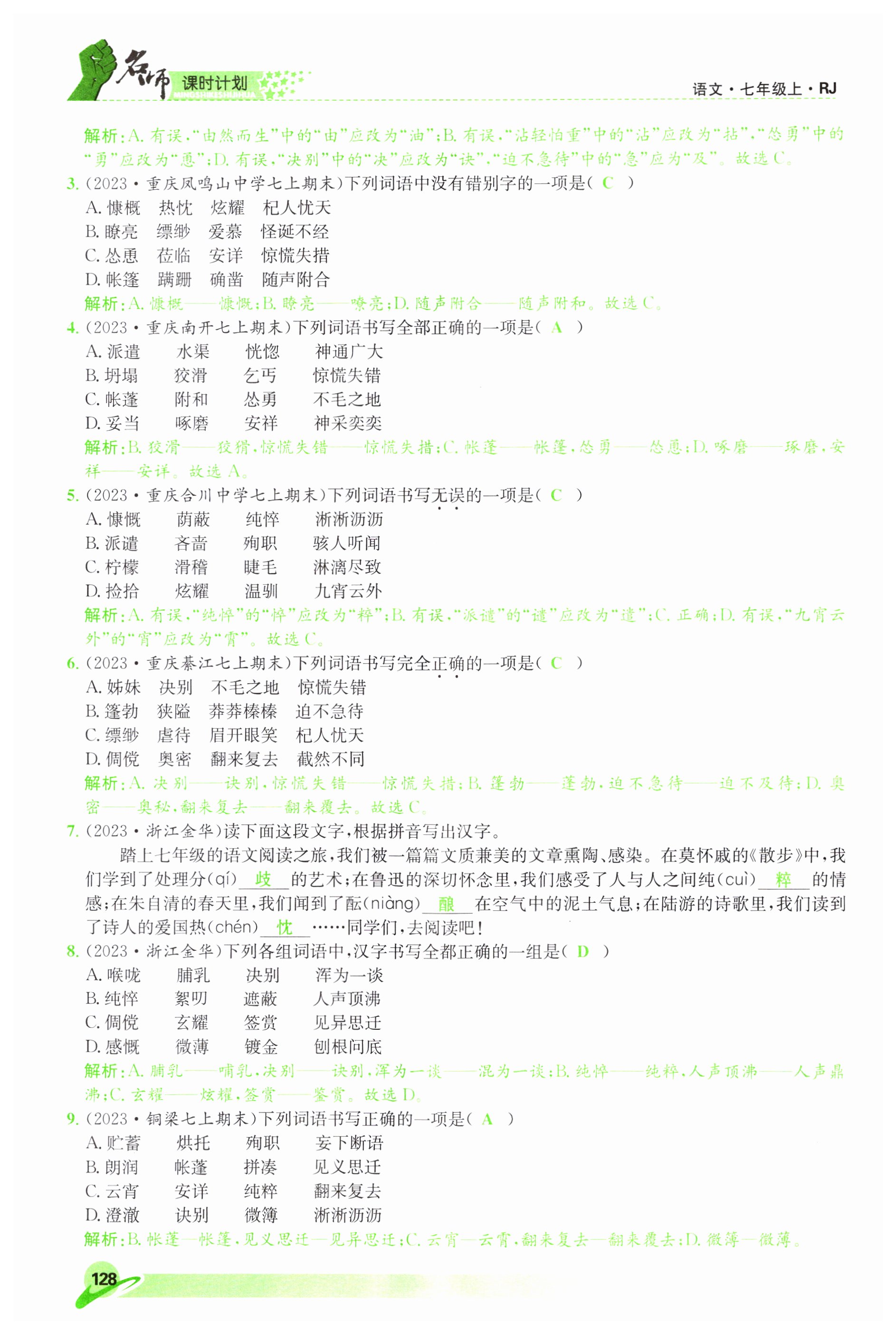 注:目前有些书本章节名称可能整理的还不是很完善,但都是按照顺序排列的,请同学们按照顺序仔细查找。练习册 2023年名师课时计划七年级语文上册人教版 答案主要是用来给同学们做完题方便对答案用的,请勿直接抄袭。