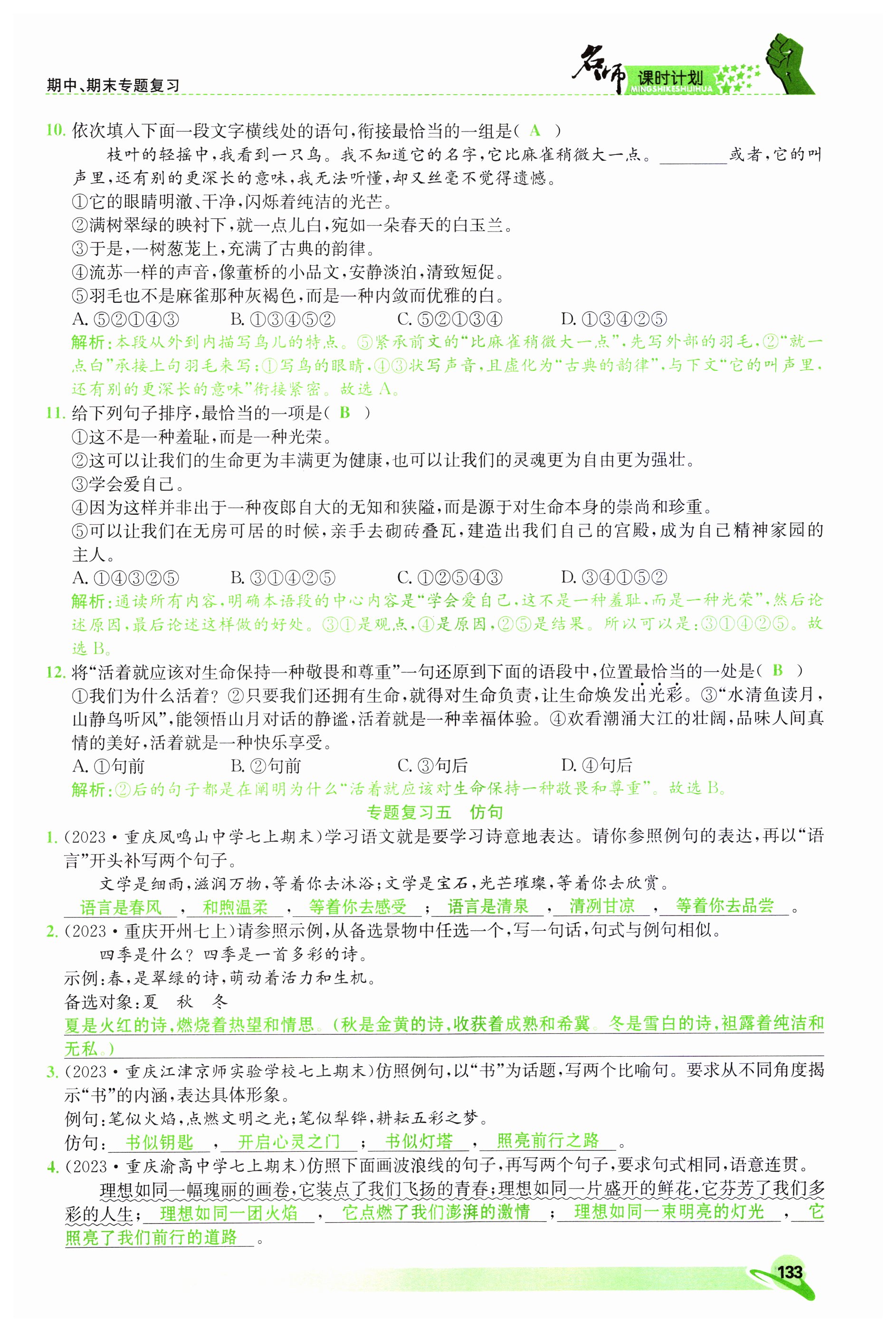 注:目前有些书本章节名称可能整理的还不是很完善,但都是按照顺序排列的,请同学们按照顺序仔细查找。练习册 2023年名师课时计划七年级语文上册人教版 答案主要是用来给同学们做完题方便对答案用的,请勿直接抄袭。