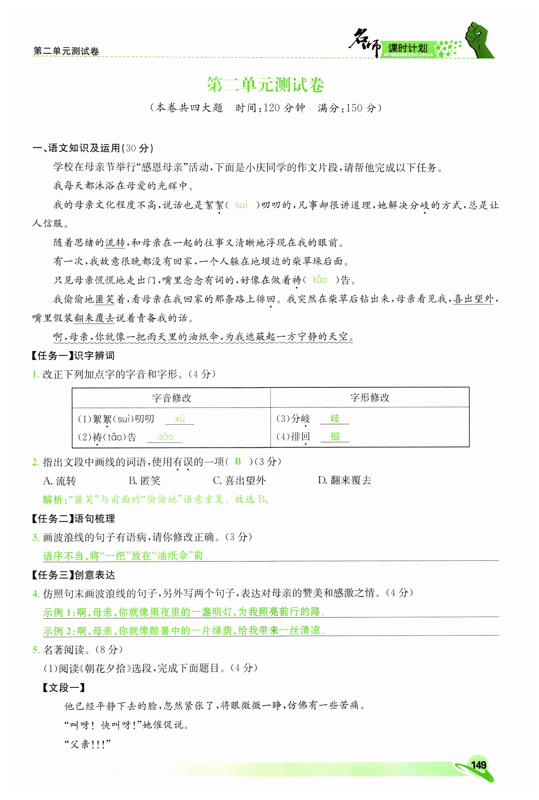 注:目前有些书本章节名称可能整理的还不是很完善,但都是按照顺序排列的,请同学们按照顺序仔细查找。练习册 2023年名师课时计划七年级语文上册人教版 答案主要是用来给同学们做完题方便对答案用的,请勿直接抄袭。
