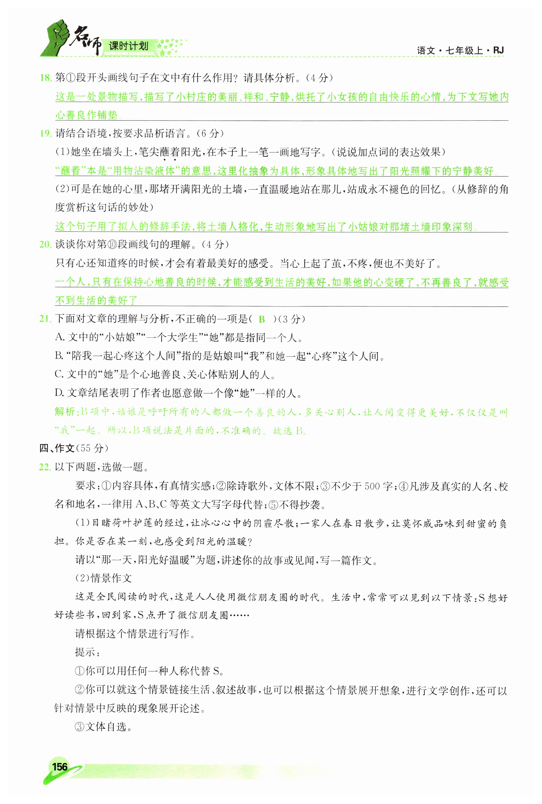注:目前有些书本章节名称可能整理的还不是很完善,但都是按照顺序排列的,请同学们按照顺序仔细查找。练习册 2023年名师课时计划七年级语文上册人教版 答案主要是用来给同学们做完题方便对答案用的,请勿直接抄袭。