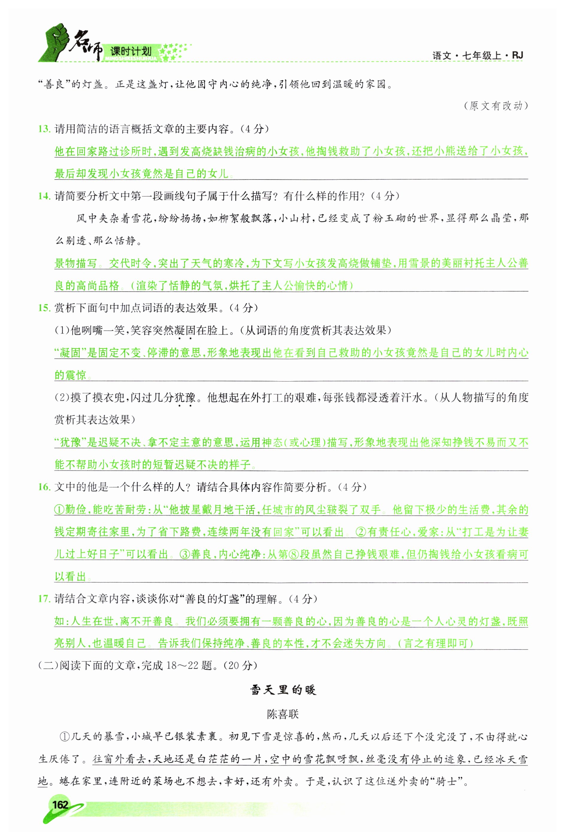 注:目前有些书本章节名称可能整理的还不是很完善,但都是按照顺序排列的,请同学们按照顺序仔细查找。练习册 2023年名师课时计划七年级语文上册人教版 答案主要是用来给同学们做完题方便对答案用的,请勿直接抄袭。