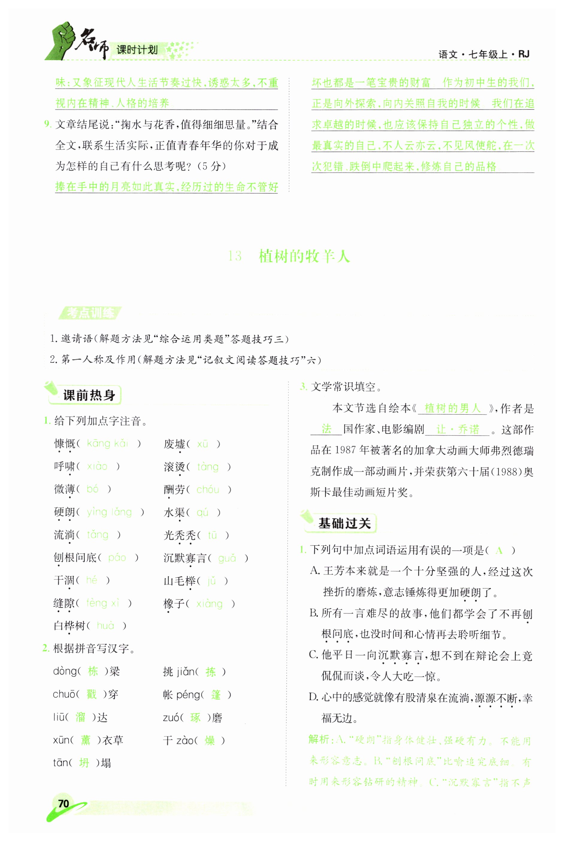 注:目前有些书本章节名称可能整理的还不是很完善,但都是按照顺序排列的,请同学们按照顺序仔细查找。练习册 2023年名师课时计划七年级语文上册人教版 答案主要是用来给同学们做完题方便对答案用的,请勿直接抄袭。