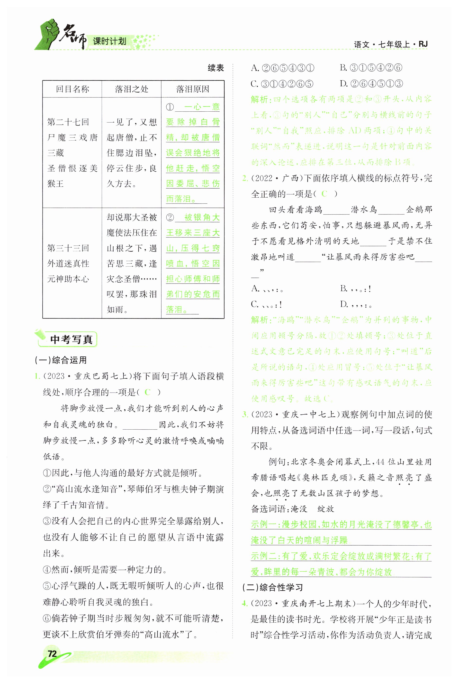 注:目前有些书本章节名称可能整理的还不是很完善,但都是按照顺序排列的,请同学们按照顺序仔细查找。练习册 2023年名师课时计划七年级语文上册人教版 答案主要是用来给同学们做完题方便对答案用的,请勿直接抄袭。