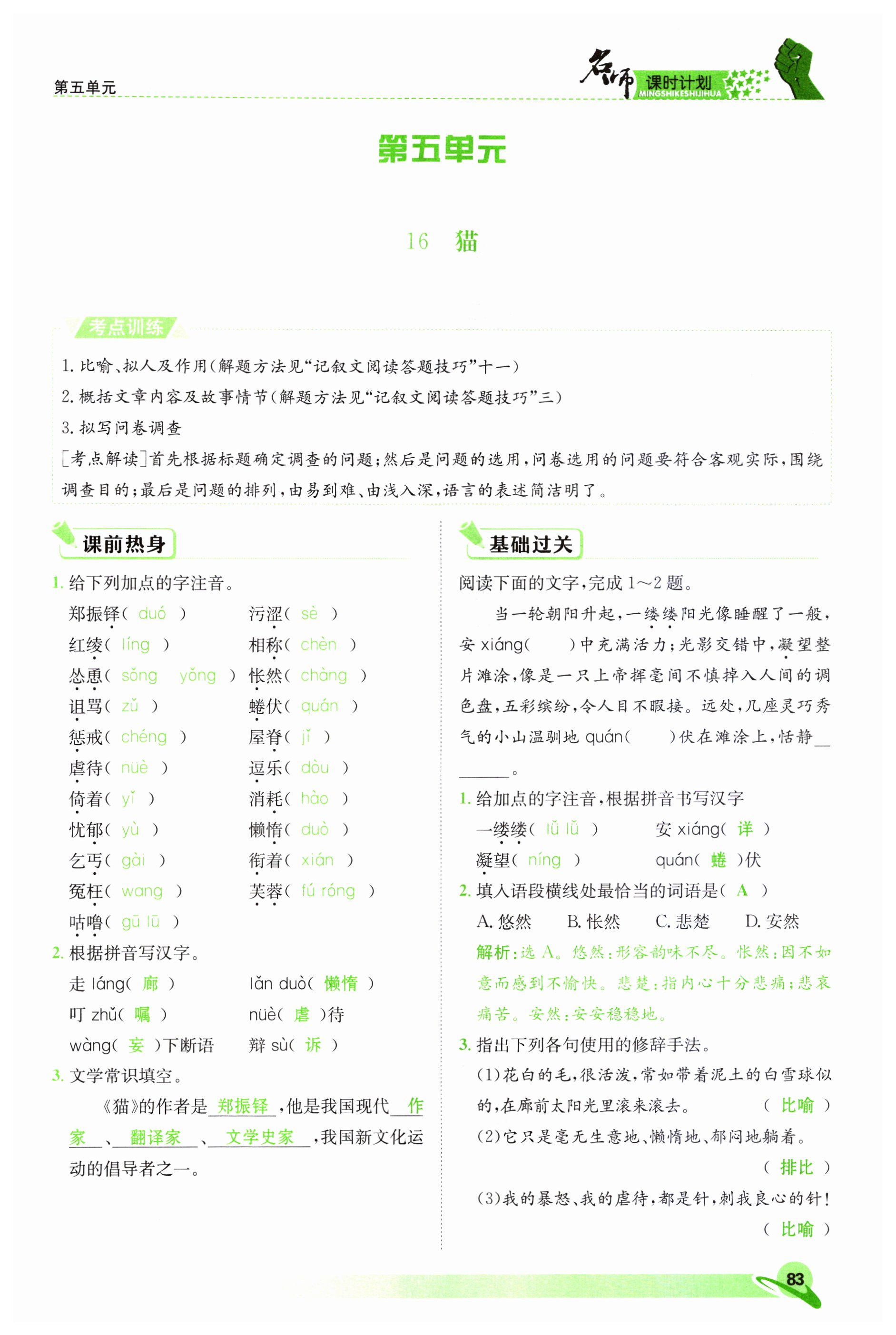 注:目前有些书本章节名称可能整理的还不是很完善,但都是按照顺序排列的,请同学们按照顺序仔细查找。练习册 2023年名师课时计划七年级语文上册人教版 答案主要是用来给同学们做完题方便对答案用的,请勿直接抄袭。