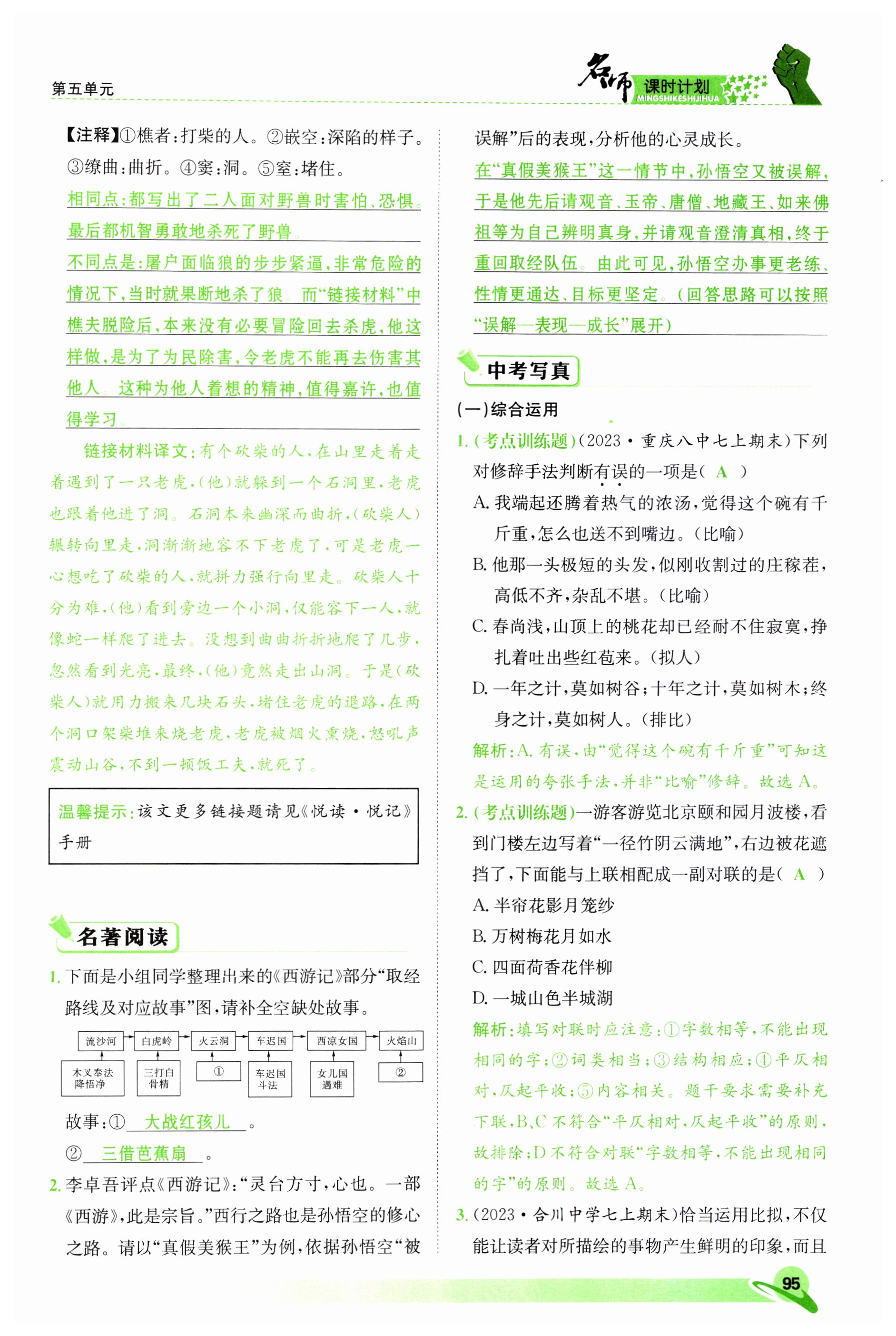 注:目前有些书本章节名称可能整理的还不是很完善,但都是按照顺序排列的,请同学们按照顺序仔细查找。练习册 2023年名师课时计划七年级语文上册人教版 答案主要是用来给同学们做完题方便对答案用的,请勿直接抄袭。