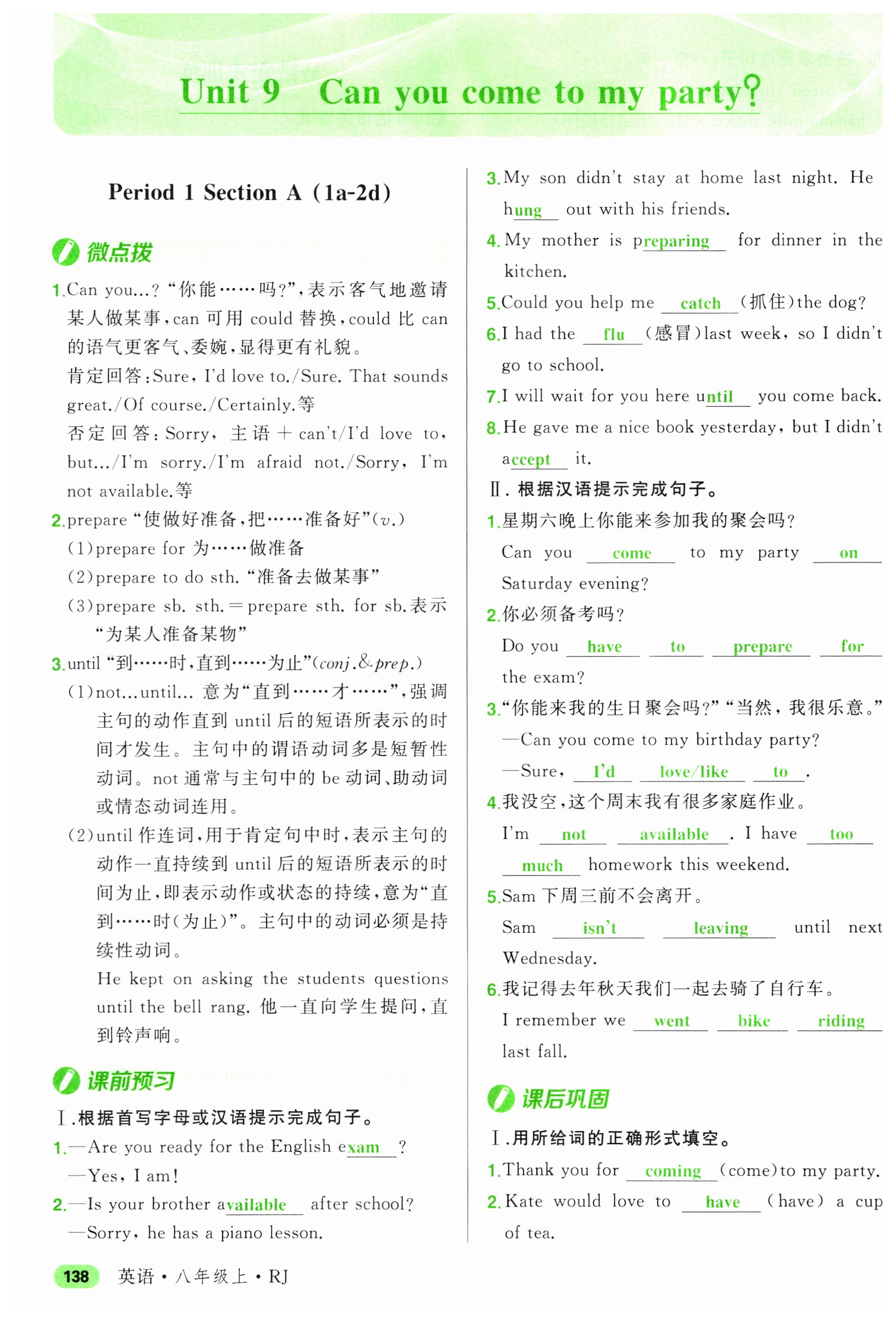 注:目前有些书本章节名称可能整理的还不是很完善,但都是按照顺序排列的,请同学们按照顺序仔细查找。练习册 2023年名师课时计划八年级英语上册人教版 答案主要是用来给同学们做完题方便对答案用的,请勿直接抄袭。