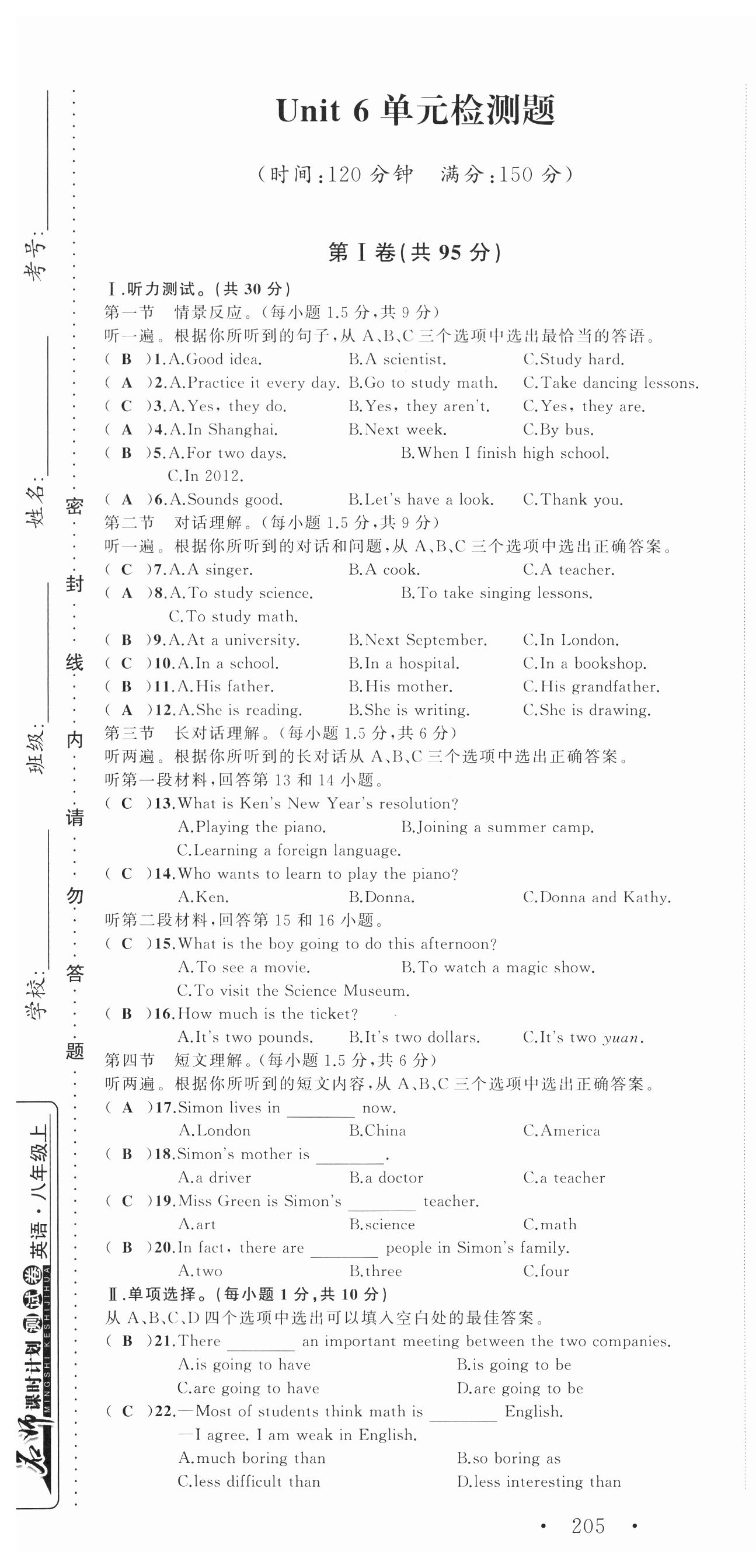 注:目前有些书本章节名称可能整理的还不是很完善,但都是按照顺序排列的,请同学们按照顺序仔细查找。练习册 2023年名师课时计划八年级英语上册人教版 答案主要是用来给同学们做完题方便对答案用的,请勿直接抄袭。