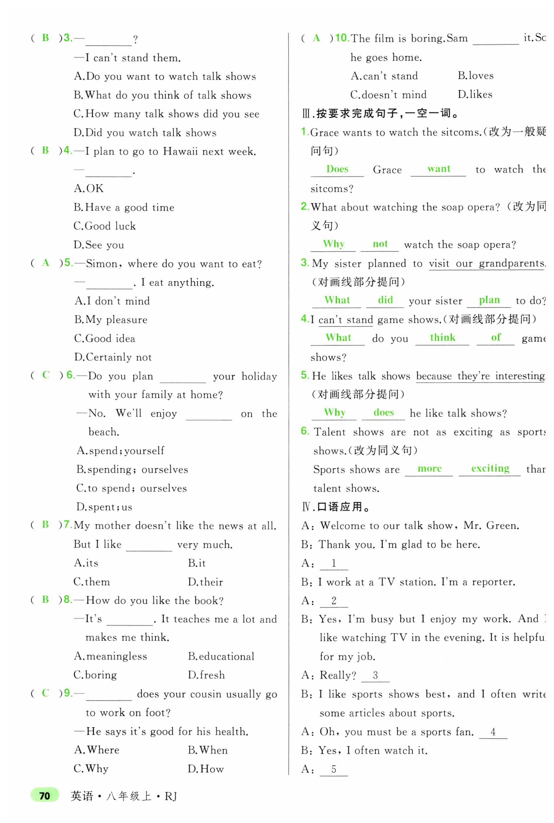 注:目前有些书本章节名称可能整理的还不是很完善,但都是按照顺序排列的,请同学们按照顺序仔细查找。练习册 2023年名师课时计划八年级英语上册人教版 答案主要是用来给同学们做完题方便对答案用的,请勿直接抄袭。