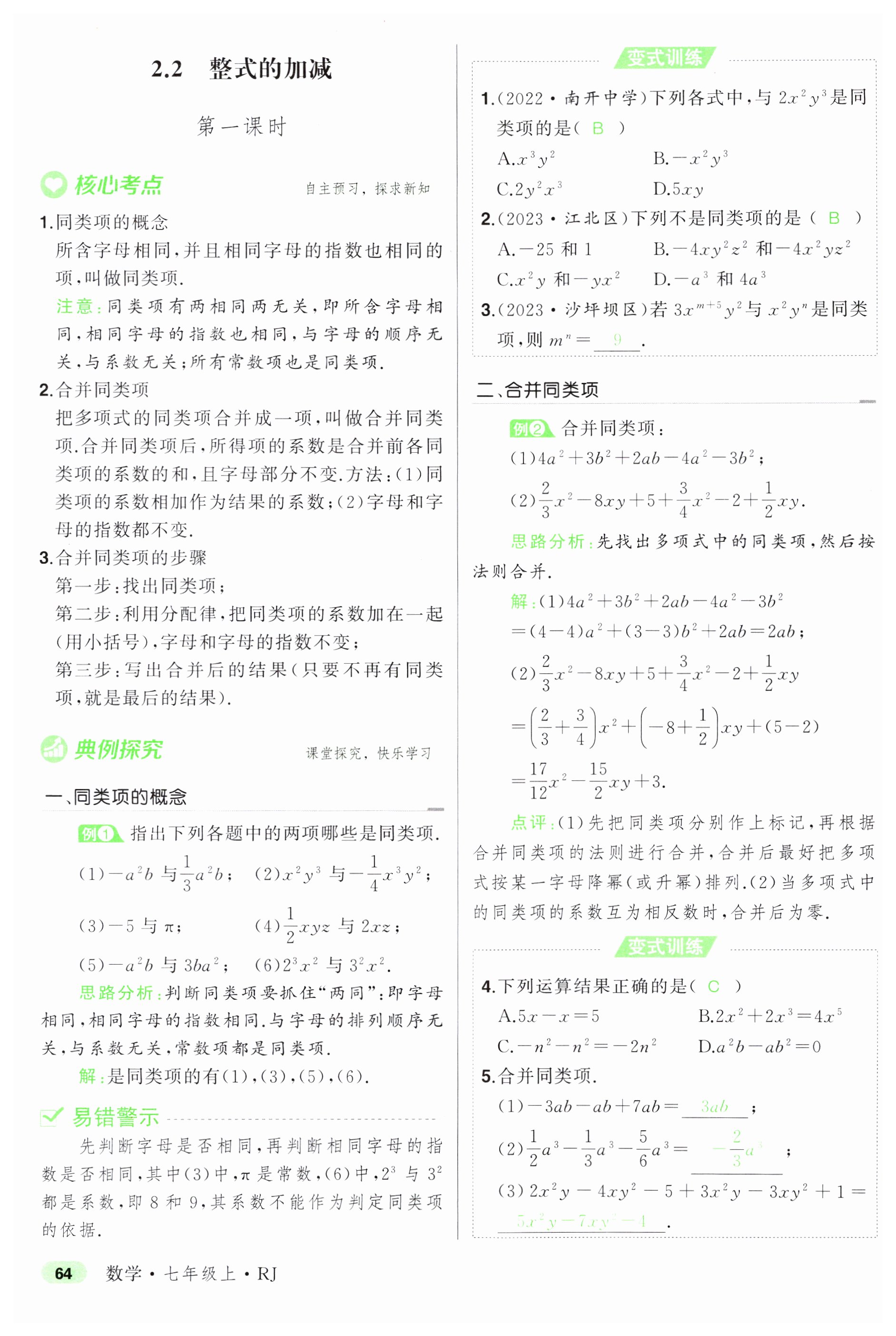 注:目前有些书本章节名称可能整理的还不是很完善,但都是按照顺序排列的,请同学们按照顺序仔细查找。练习册 2023年名师课时计划七年级数学上册人教版 答案主要是用来给同学们做完题方便对答案用的,请勿直接抄袭。