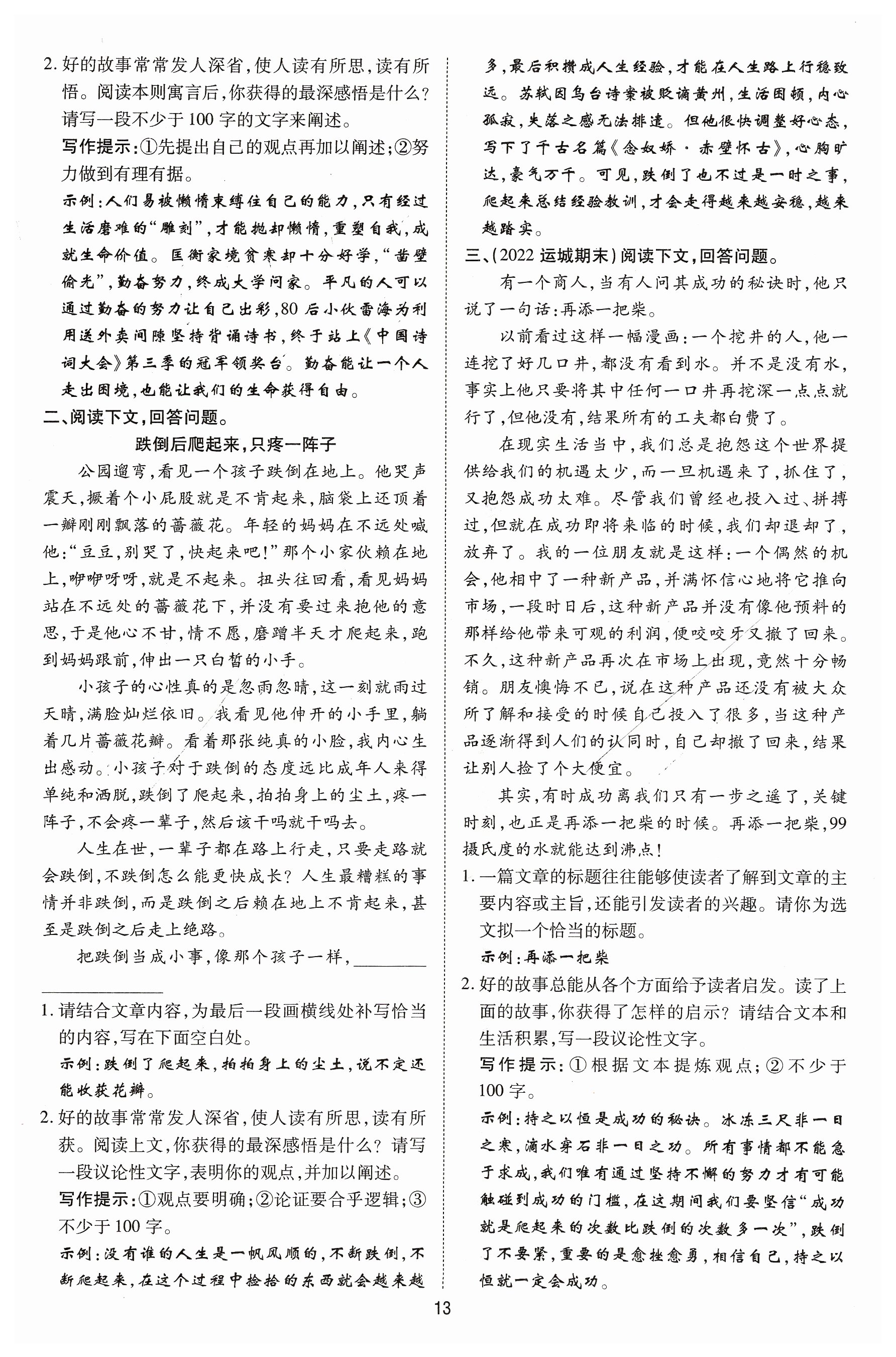 注:目前有些书本章节名称可能整理的还不是很完善,但都是按照顺序排列的,请同学们按照顺序仔细查找。练习册 2023年畅行课堂七年级语文上册人教版山西专版 答案主要是用来给同学们做完题方便对答案用的,请勿直接抄袭。