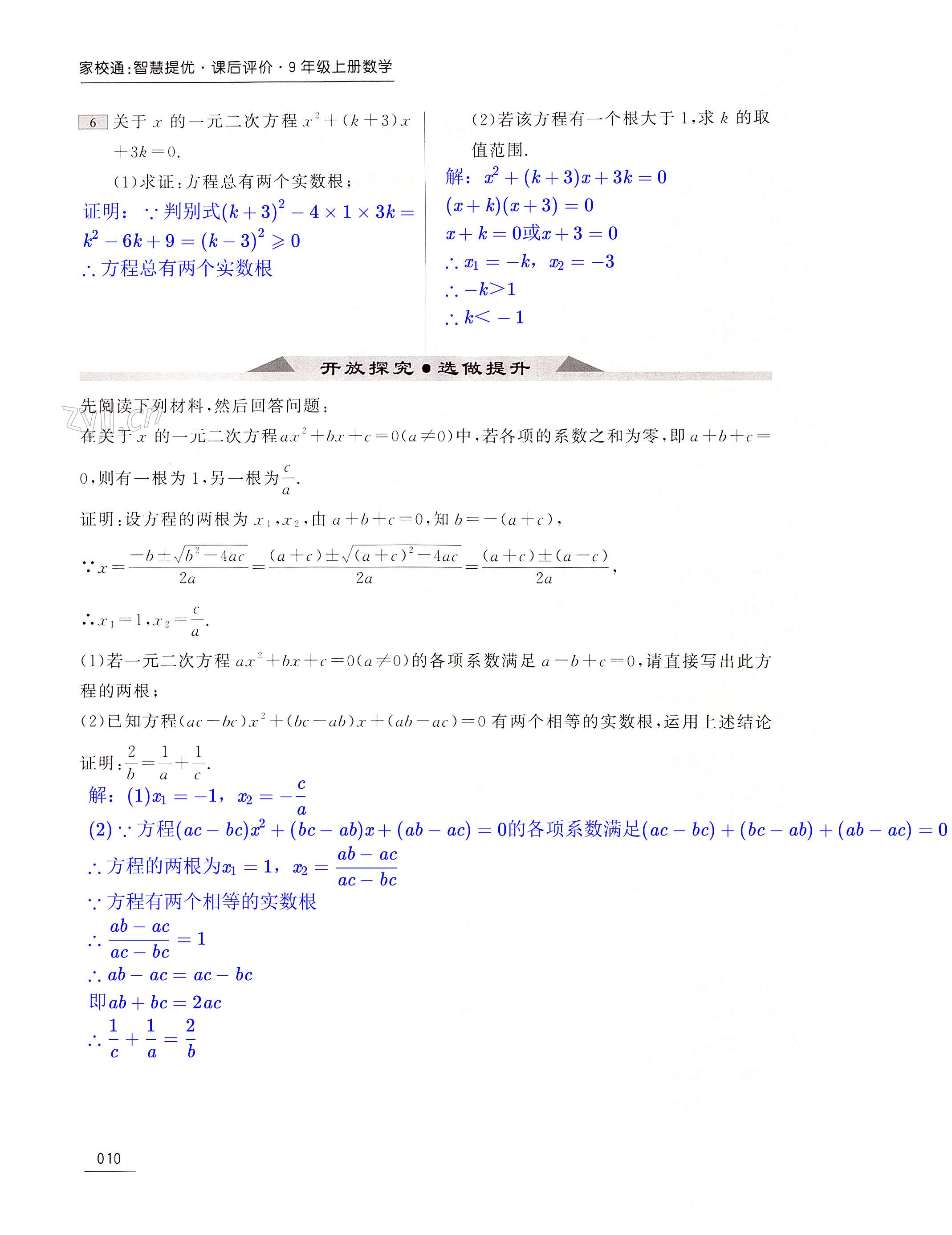 2023年家校通智慧提优课后评价九年级数学上册苏科版