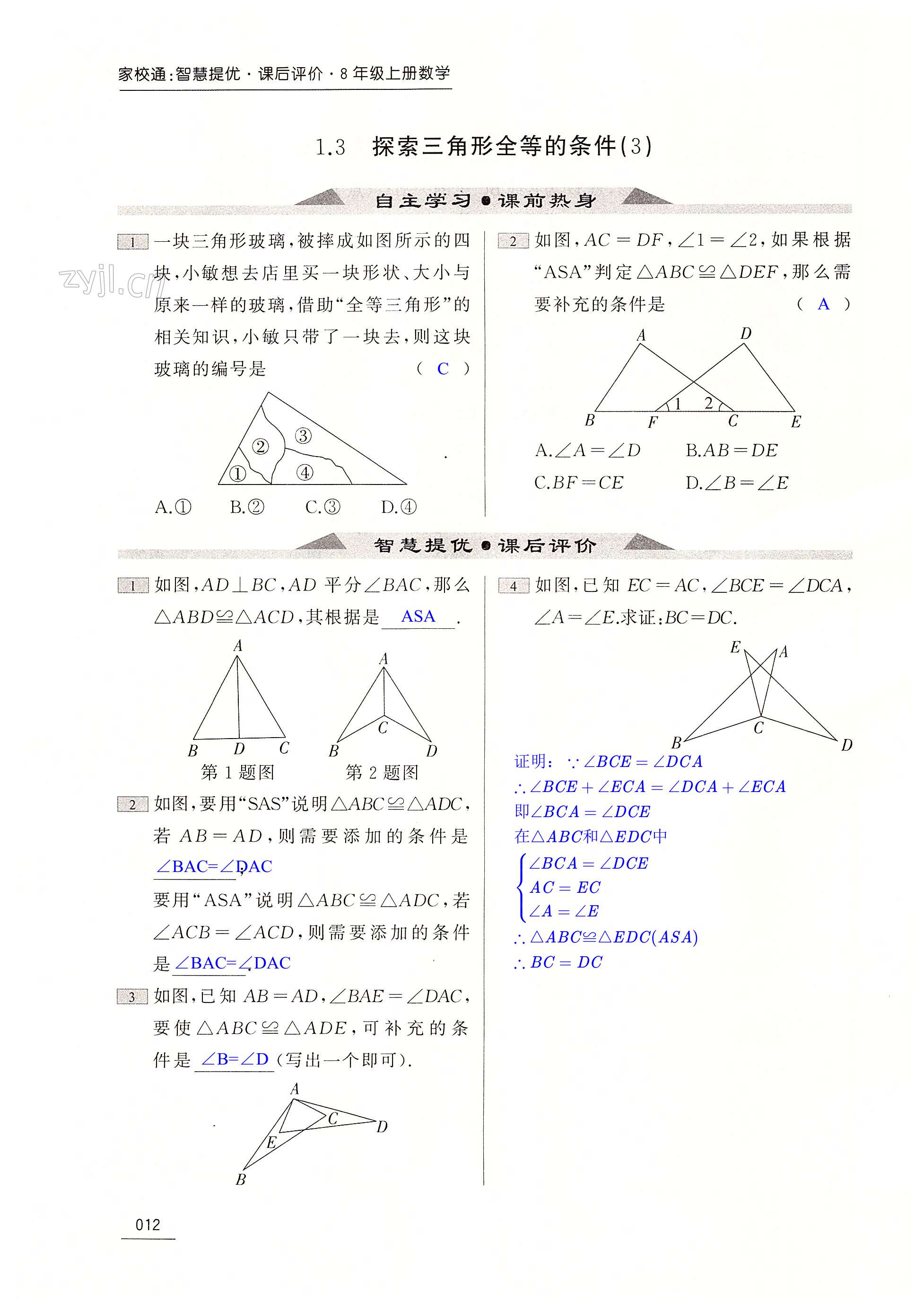 注:目前有些书本章节名称可能整理的还不是很完善,但都是按照顺序排列的,请同学们按照顺序仔细查找。练习册 2023年家校通智慧提优课后评价八年级数学上册苏科版 答案主要是用来给同学们做完题方便对答案用的,请勿直接抄袭。