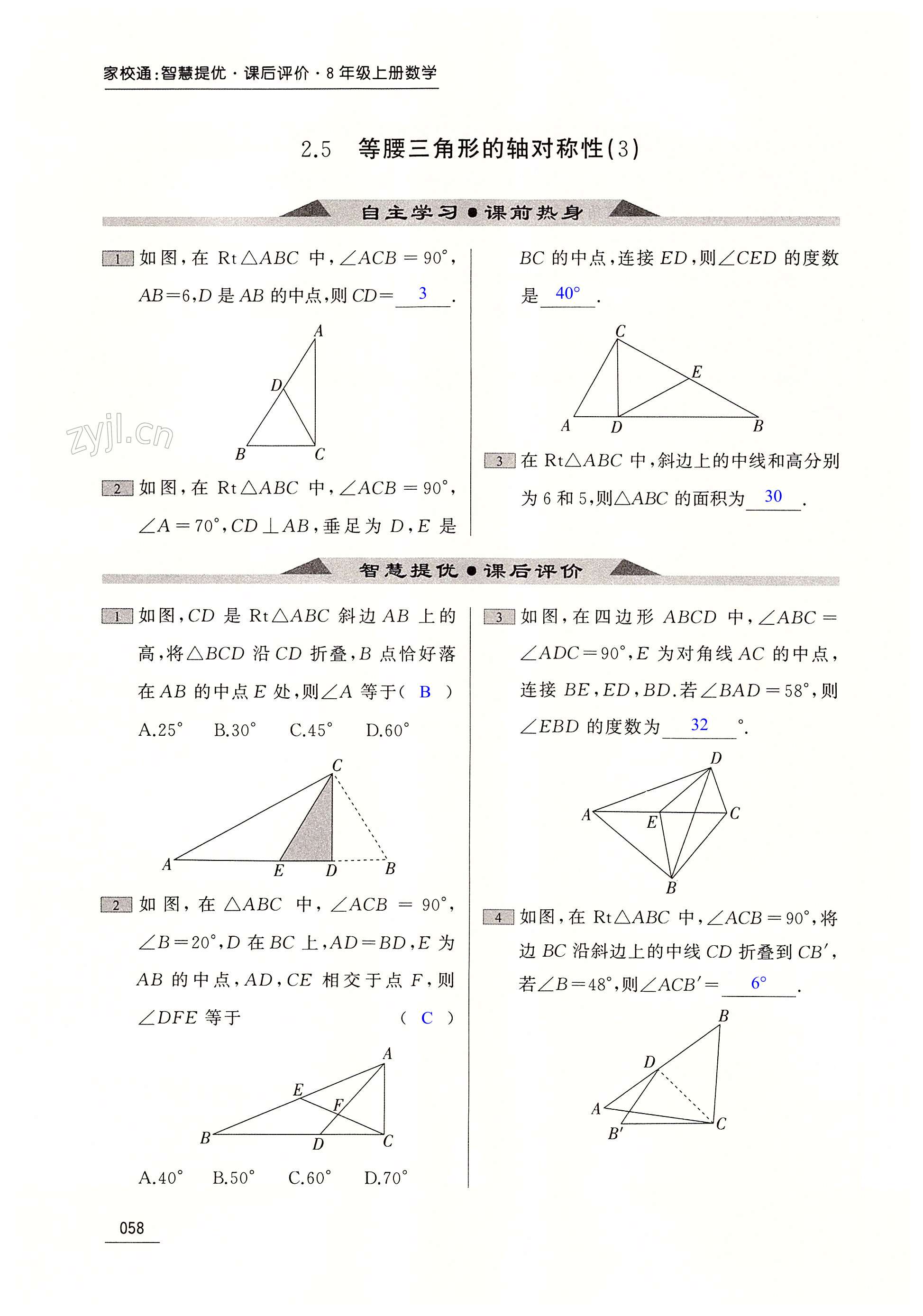 注:目前有些书本章节名称可能整理的还不是很完善,但都是按照顺序排列的,请同学们按照顺序仔细查找。练习册 2023年家校通智慧提优课后评价八年级数学上册苏科版 答案主要是用来给同学们做完题方便对答案用的,请勿直接抄袭。