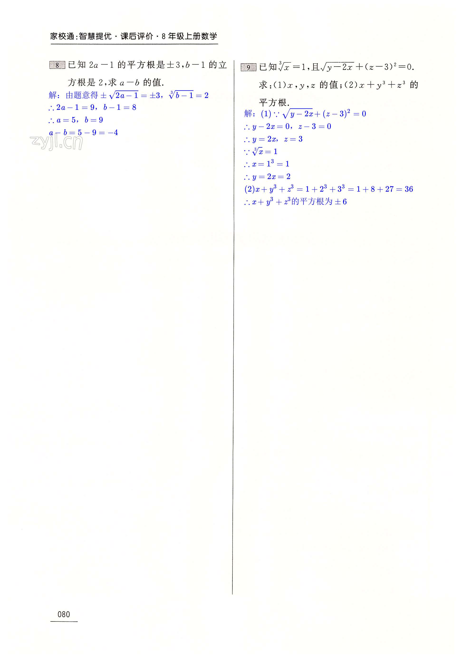 2023年家校通智慧提优课后评价八年级数学上册苏科版