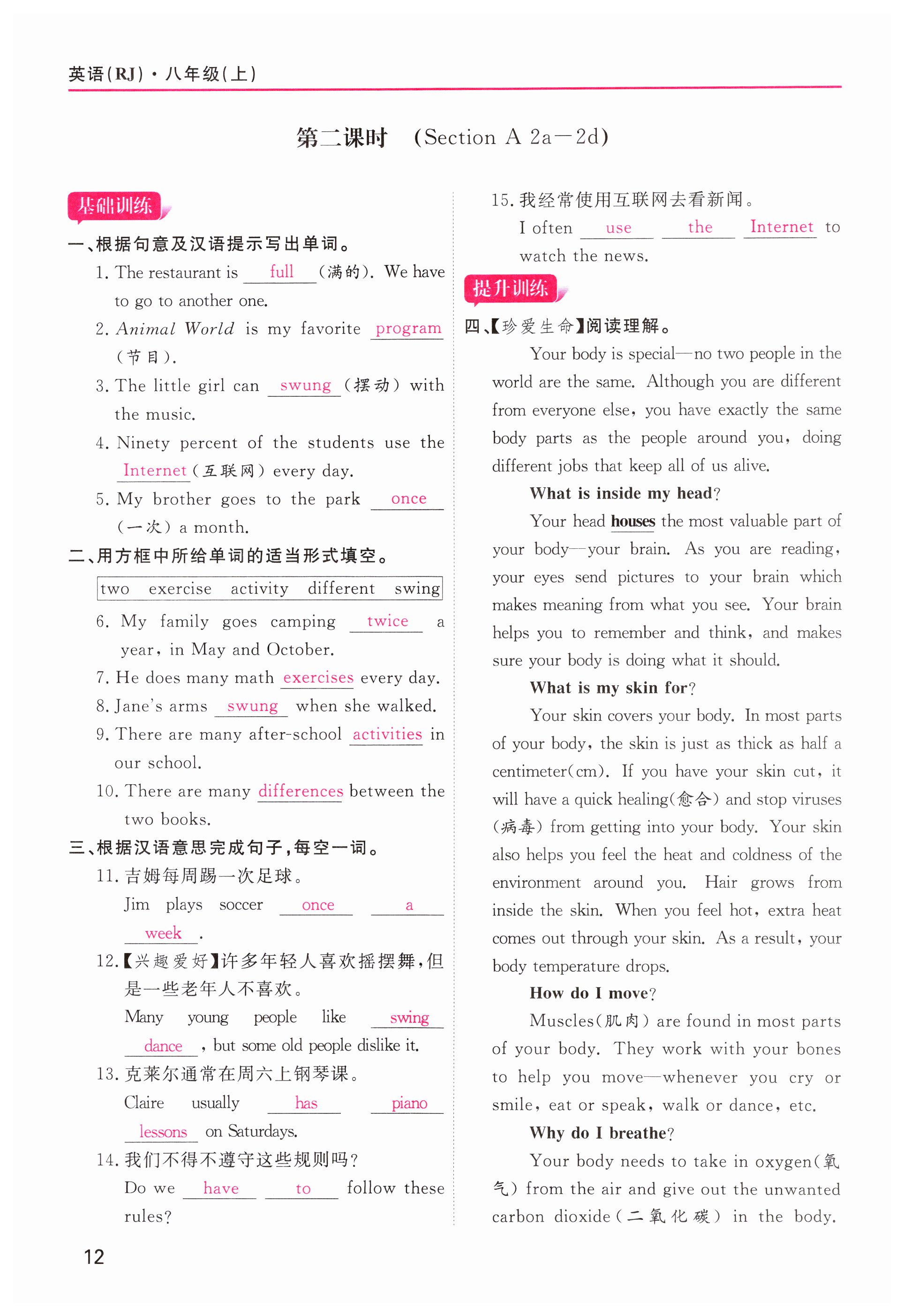 注:目前有些书本章节名称可能整理的还不是很完善,但都是按照顺序排列的,请同学们按照顺序仔细查找。练习册 2023年我的作业八年级英语上册人教版河南专版 答案主要是用来给同学们做完题方便对答案用的,请勿直接抄袭。