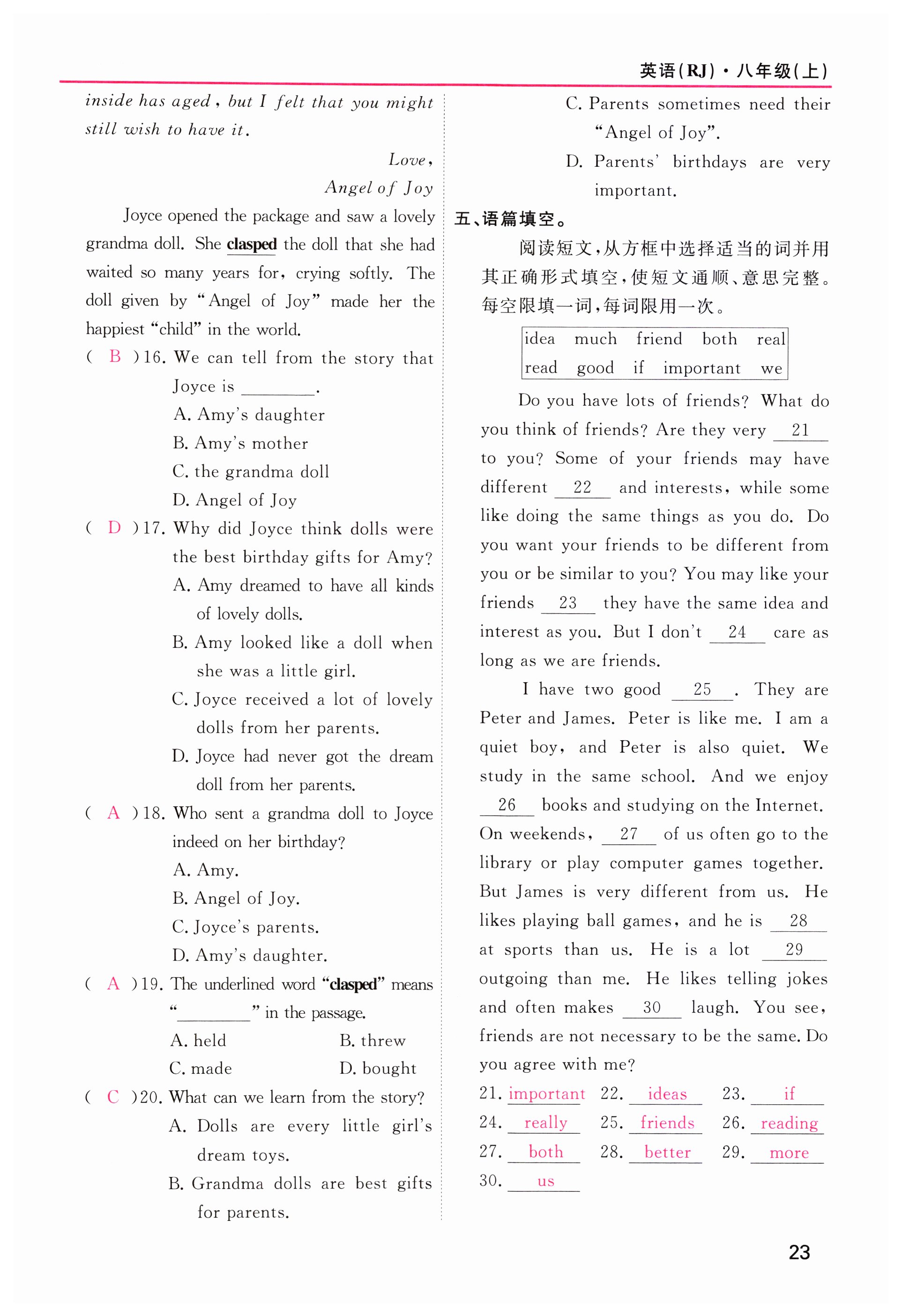 注:目前有些书本章节名称可能整理的还不是很完善,但都是按照顺序排列的,请同学们按照顺序仔细查找。练习册 2023年我的作业八年级英语上册人教版河南专版 答案主要是用来给同学们做完题方便对答案用的,请勿直接抄袭。