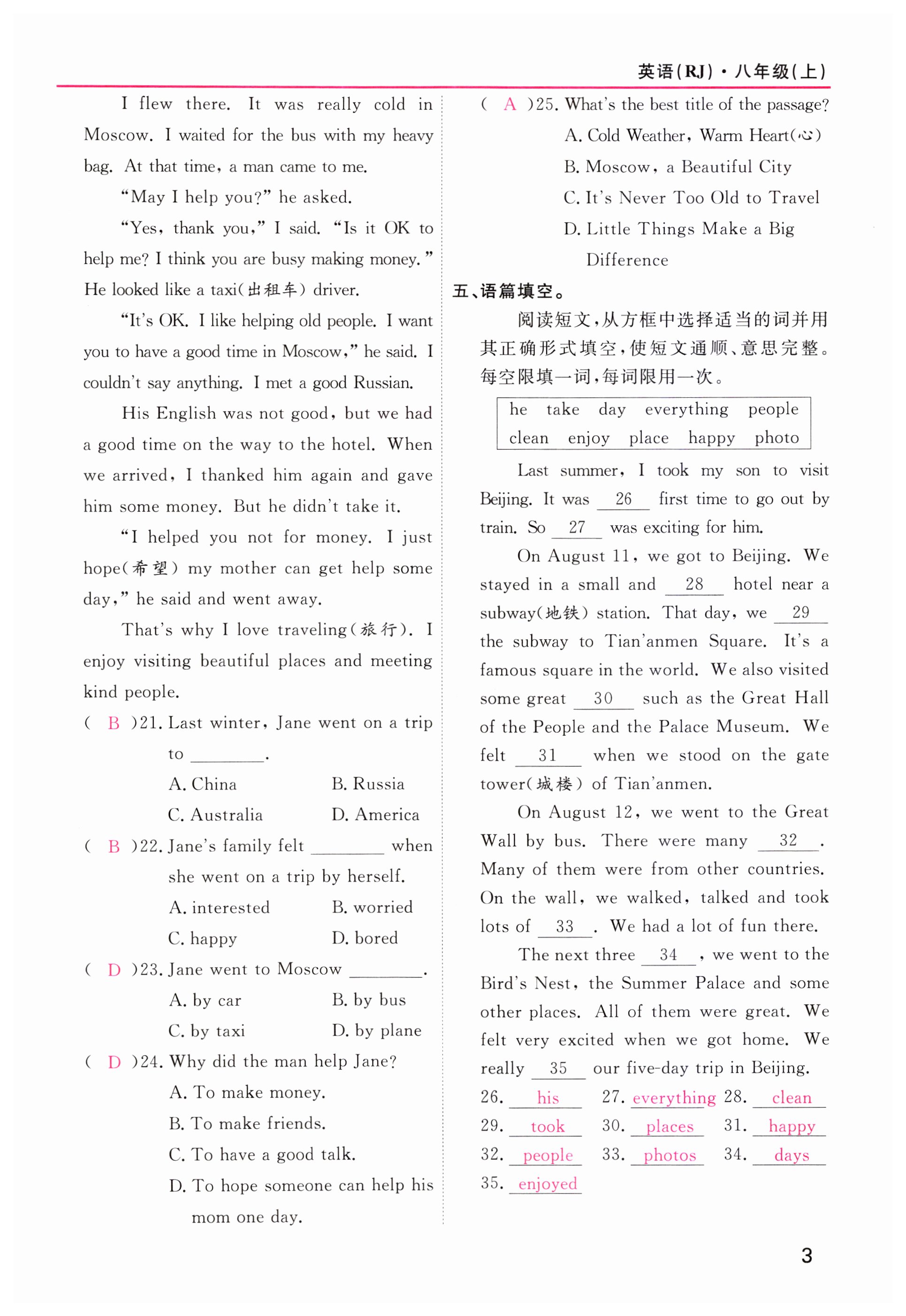 注:目前有些书本章节名称可能整理的还不是很完善,但都是按照顺序排列的,请同学们按照顺序仔细查找。练习册 2023年我的作业八年级英语上册人教版河南专版 答案主要是用来给同学们做完题方便对答案用的,请勿直接抄袭。