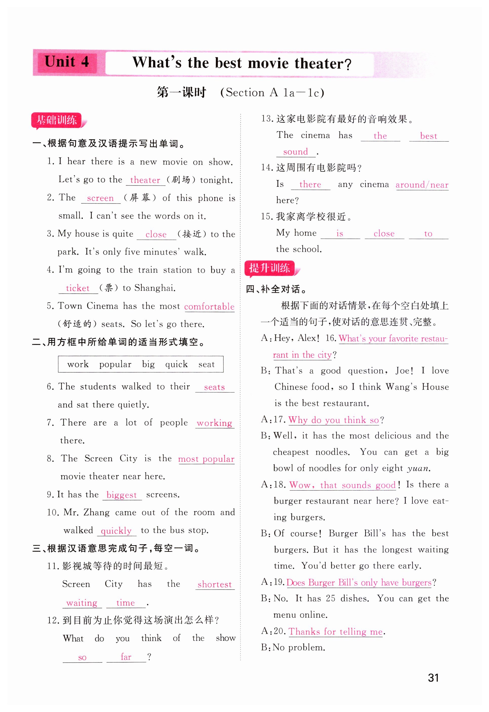 注:目前有些书本章节名称可能整理的还不是很完善,但都是按照顺序排列的,请同学们按照顺序仔细查找。练习册 2023年我的作业八年级英语上册人教版河南专版 答案主要是用来给同学们做完题方便对答案用的,请勿直接抄袭。