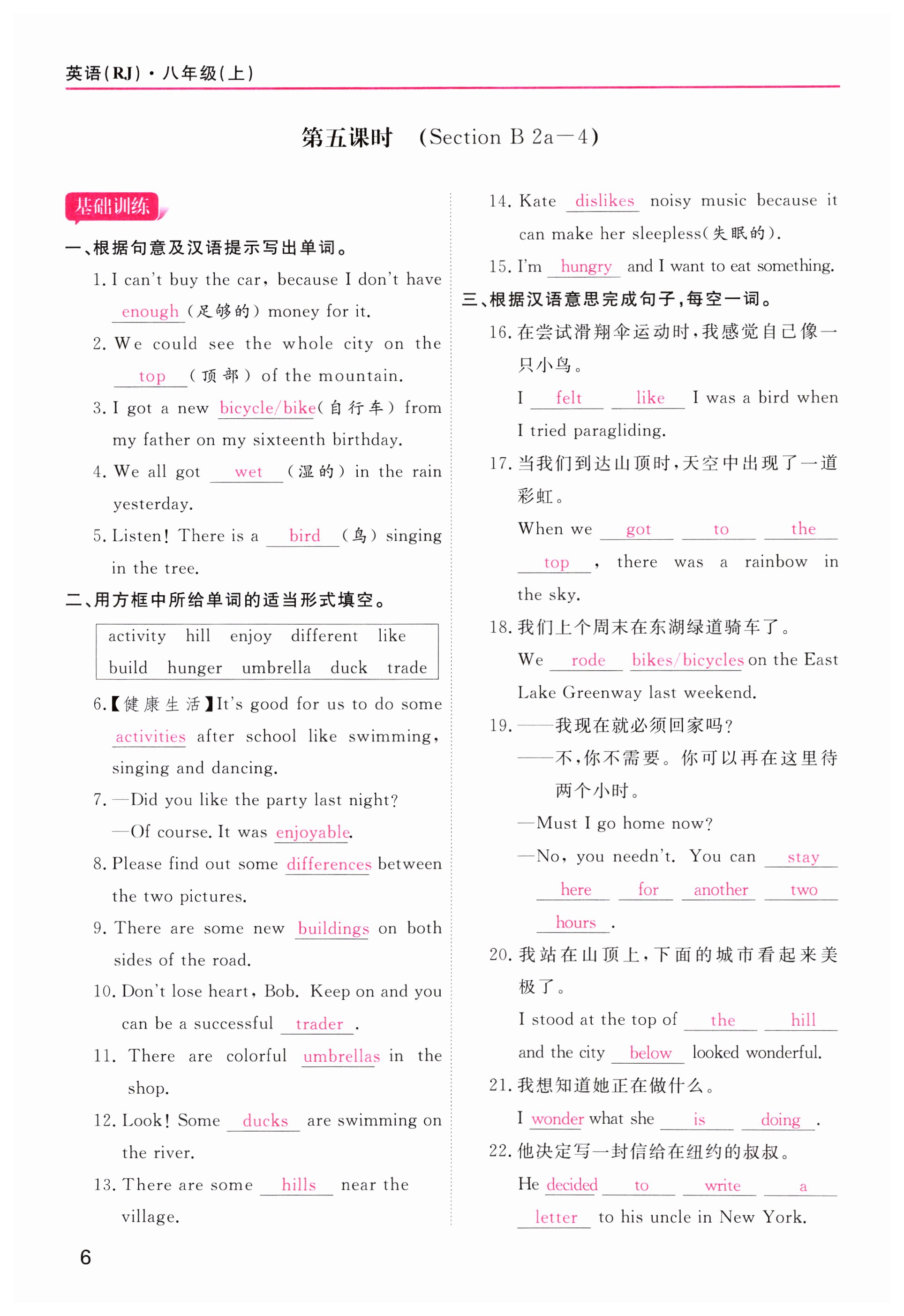 注:目前有些书本章节名称可能整理的还不是很完善,但都是按照顺序排列的,请同学们按照顺序仔细查找。练习册 2023年我的作业八年级英语上册人教版河南专版 答案主要是用来给同学们做完题方便对答案用的,请勿直接抄袭。