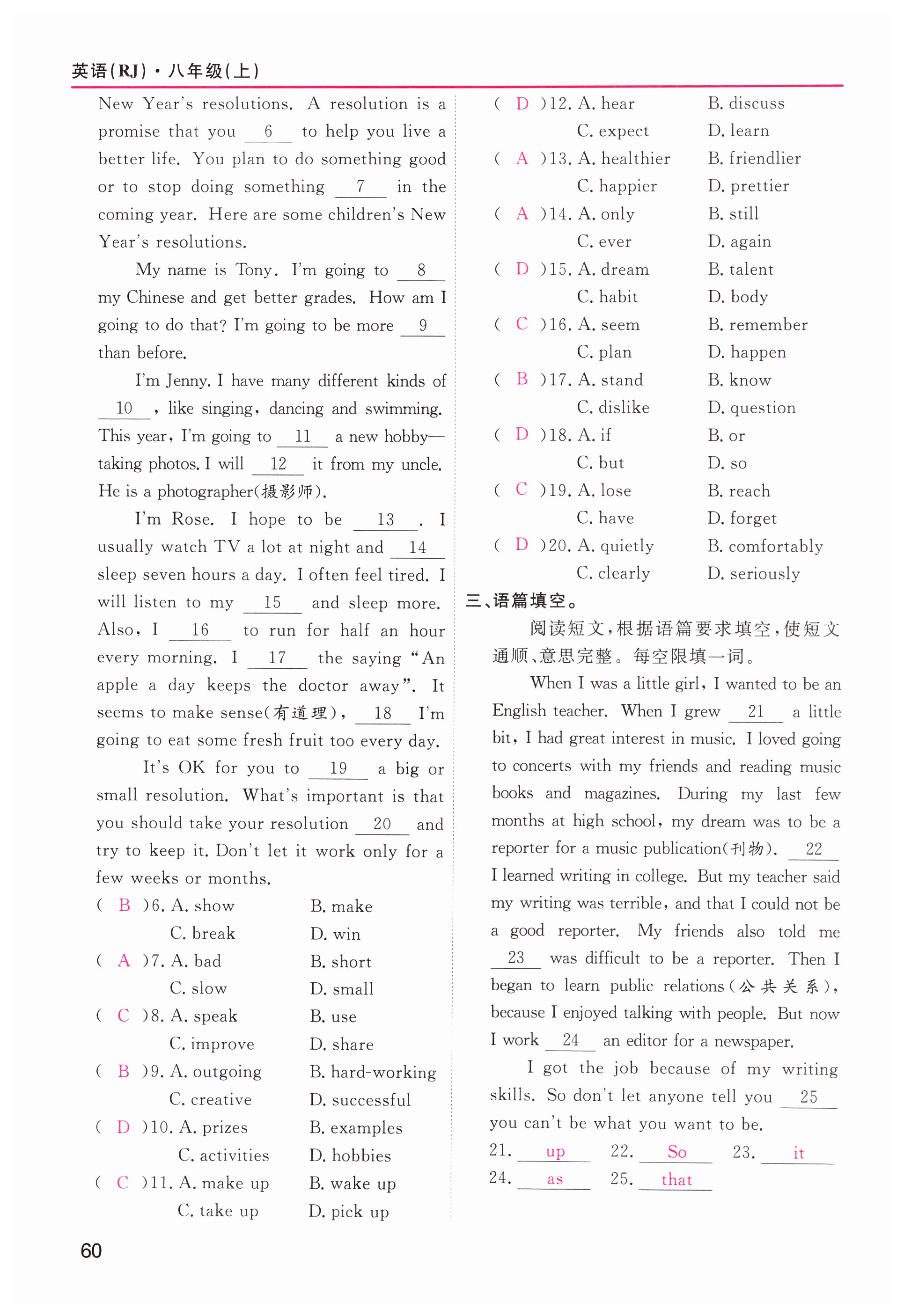注:目前有些书本章节名称可能整理的还不是很完善,但都是按照顺序排列的,请同学们按照顺序仔细查找。练习册 2023年我的作业八年级英语上册人教版河南专版 答案主要是用来给同学们做完题方便对答案用的,请勿直接抄袭。