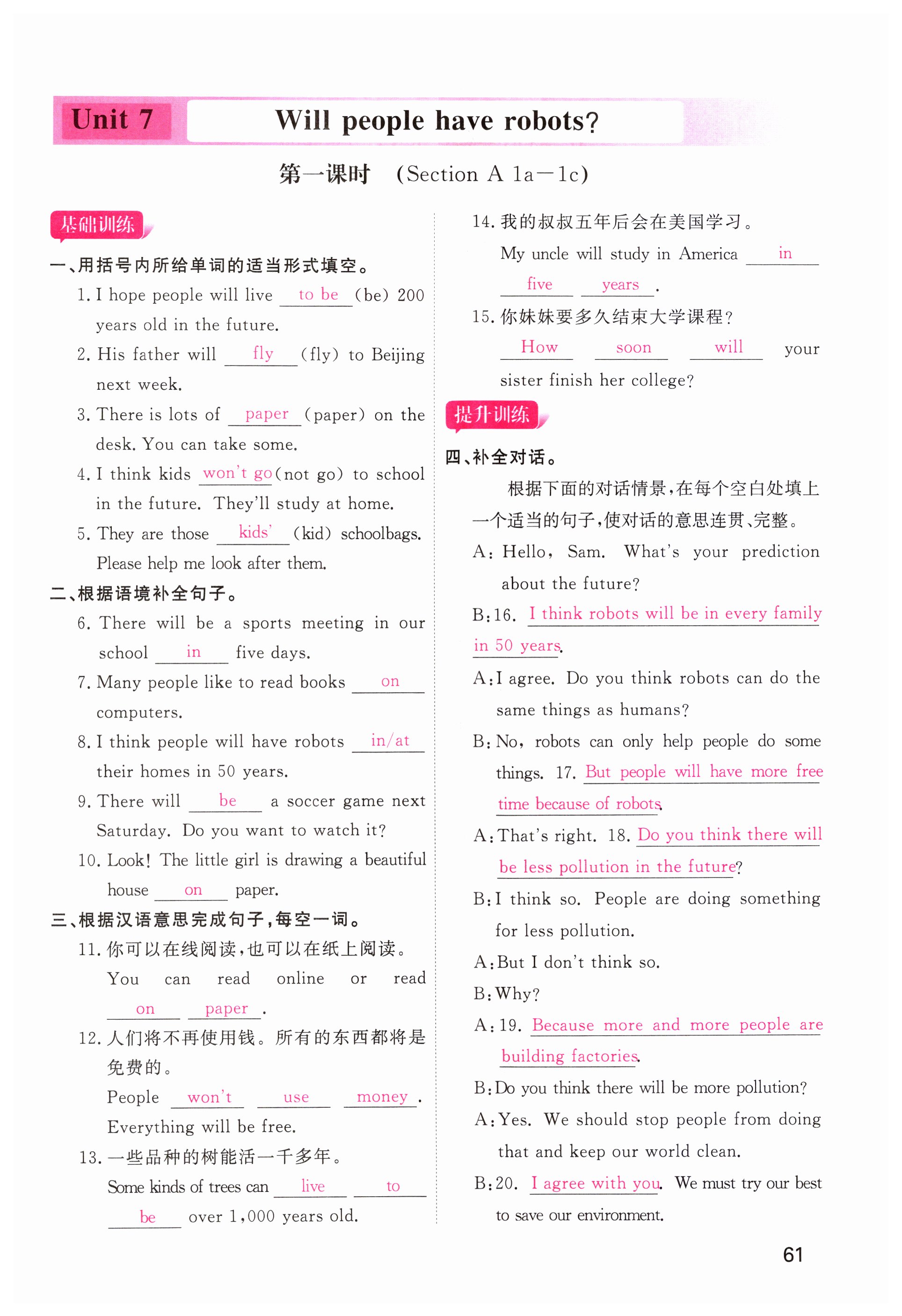 注:目前有些书本章节名称可能整理的还不是很完善,但都是按照顺序排列的,请同学们按照顺序仔细查找。练习册 2023年我的作业八年级英语上册人教版河南专版 答案主要是用来给同学们做完题方便对答案用的,请勿直接抄袭。