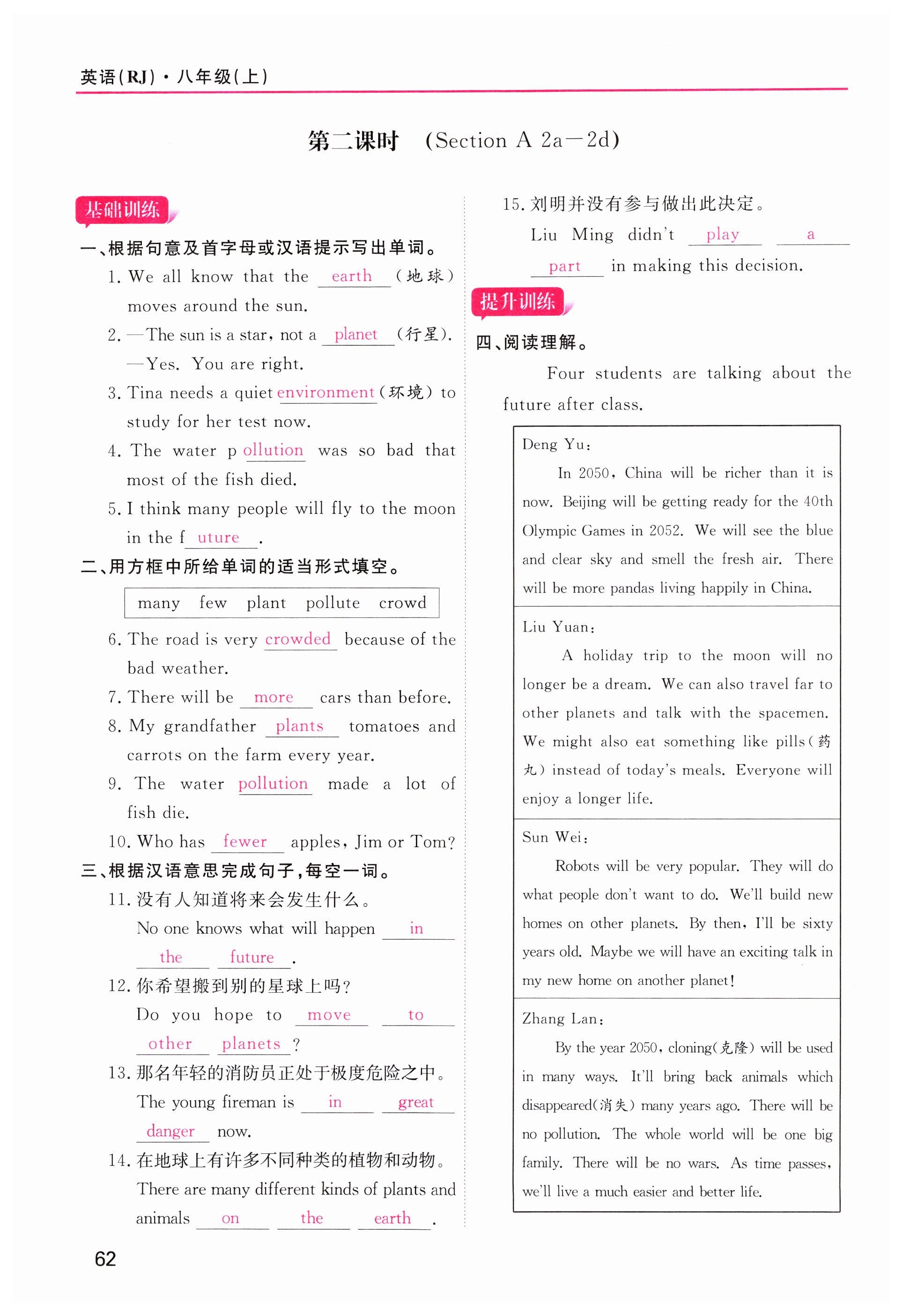 注:目前有些书本章节名称可能整理的还不是很完善,但都是按照顺序排列的,请同学们按照顺序仔细查找。练习册 2023年我的作业八年级英语上册人教版河南专版 答案主要是用来给同学们做完题方便对答案用的,请勿直接抄袭。