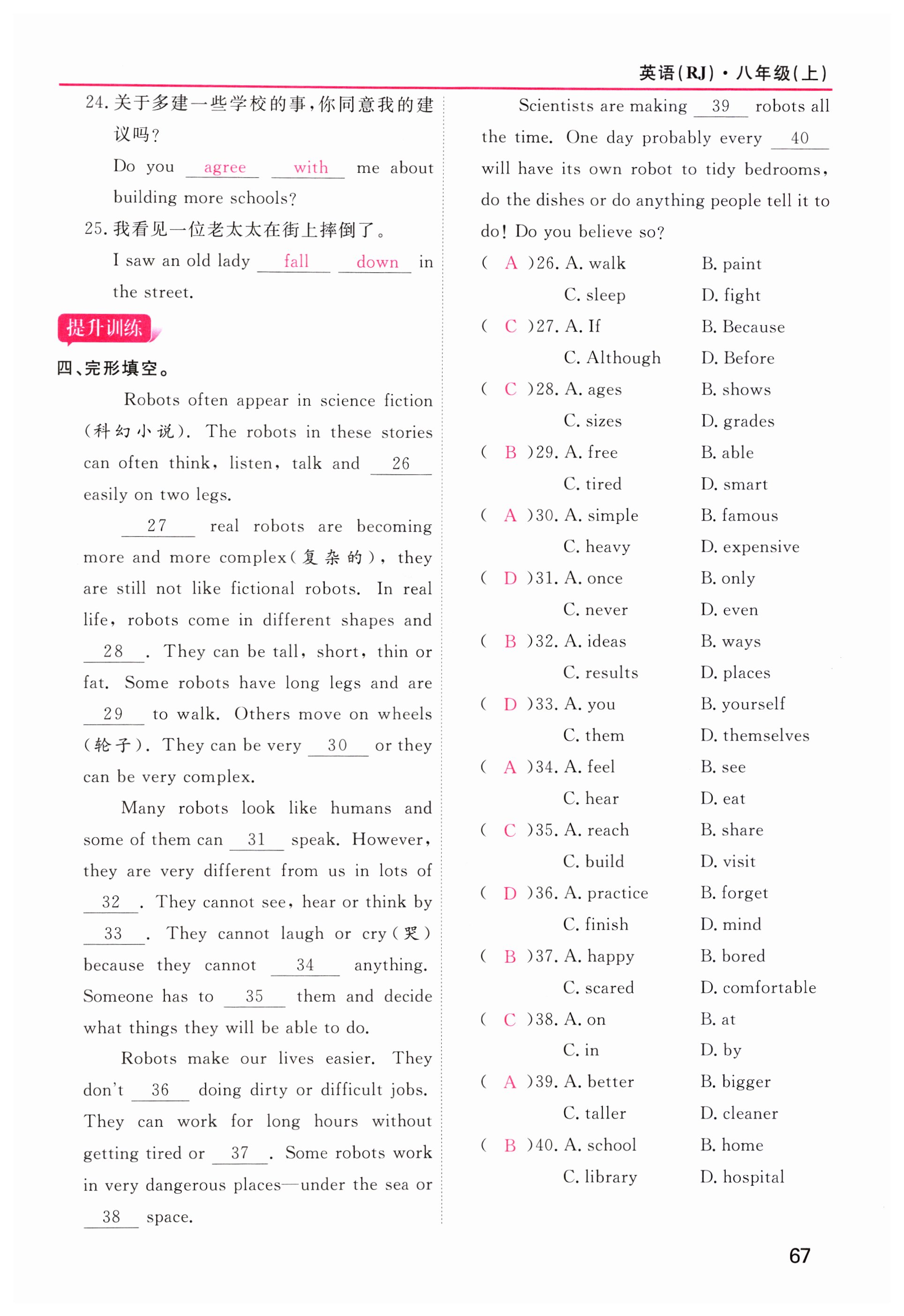 注:目前有些书本章节名称可能整理的还不是很完善,但都是按照顺序排列的,请同学们按照顺序仔细查找。练习册 2023年我的作业八年级英语上册人教版河南专版 答案主要是用来给同学们做完题方便对答案用的,请勿直接抄袭。