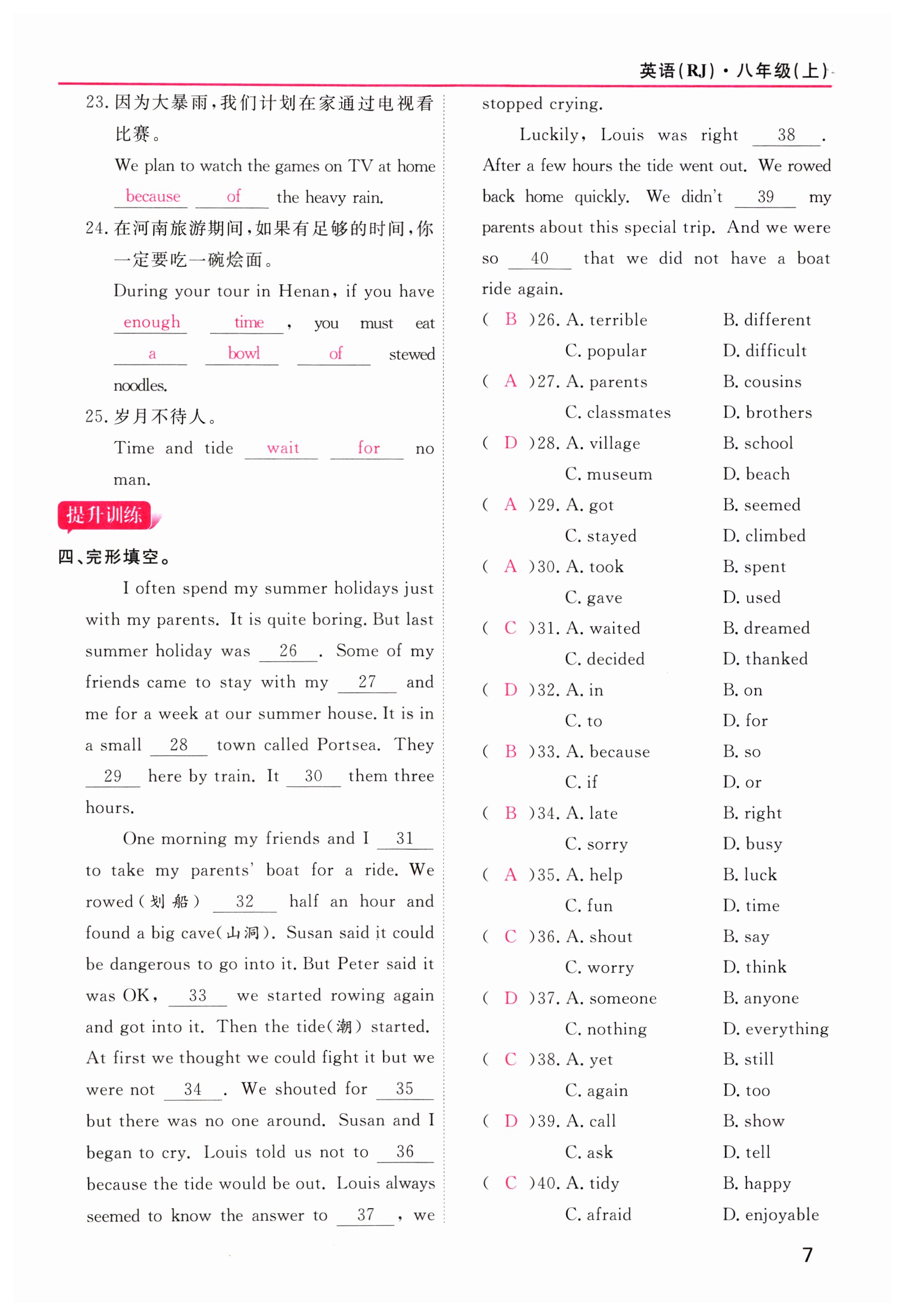 注:目前有些书本章节名称可能整理的还不是很完善,但都是按照顺序排列的,请同学们按照顺序仔细查找。练习册 2023年我的作业八年级英语上册人教版河南专版 答案主要是用来给同学们做完题方便对答案用的,请勿直接抄袭。