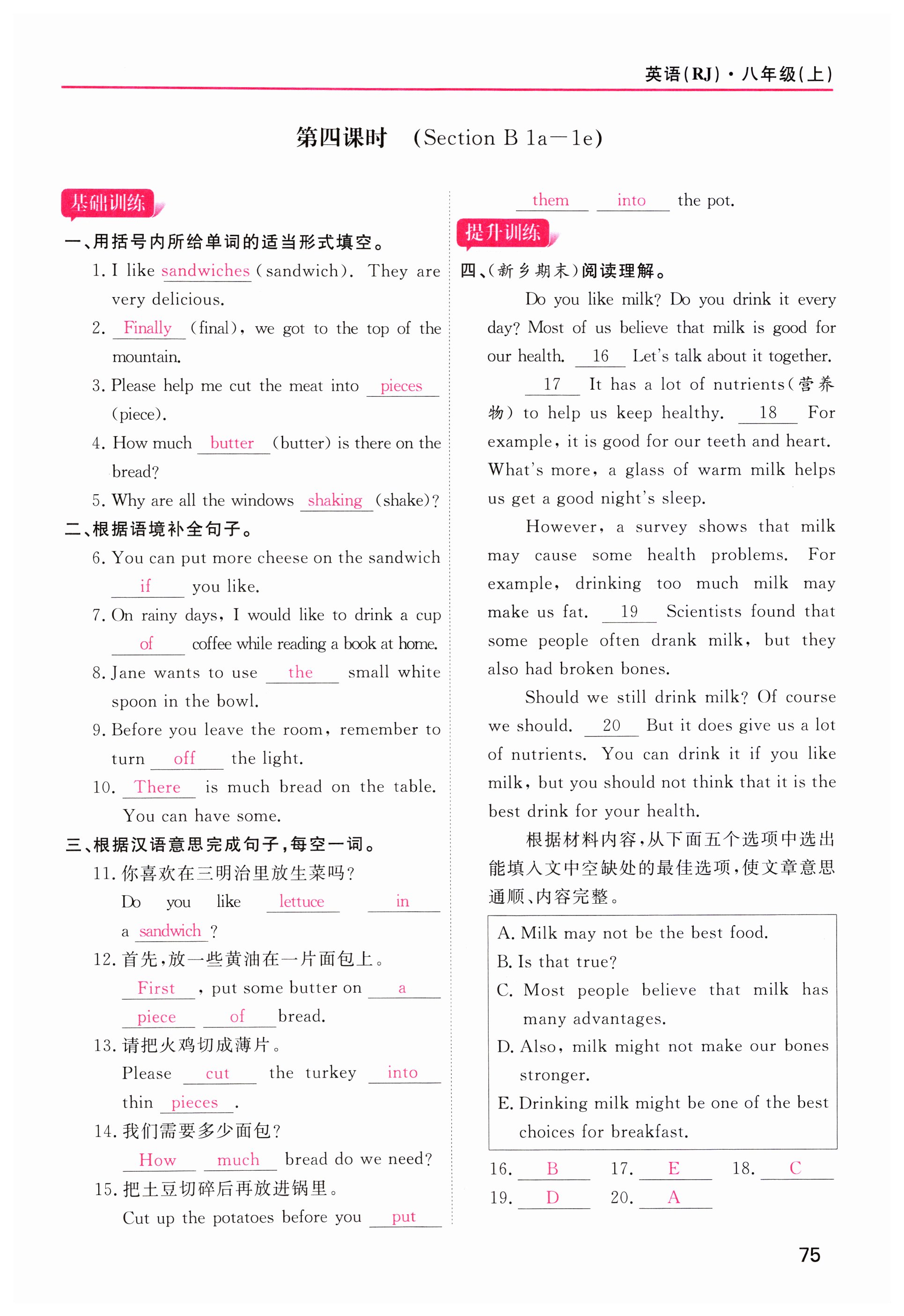 注:目前有些书本章节名称可能整理的还不是很完善,但都是按照顺序排列的,请同学们按照顺序仔细查找。练习册 2023年我的作业八年级英语上册人教版河南专版 答案主要是用来给同学们做完题方便对答案用的,请勿直接抄袭。