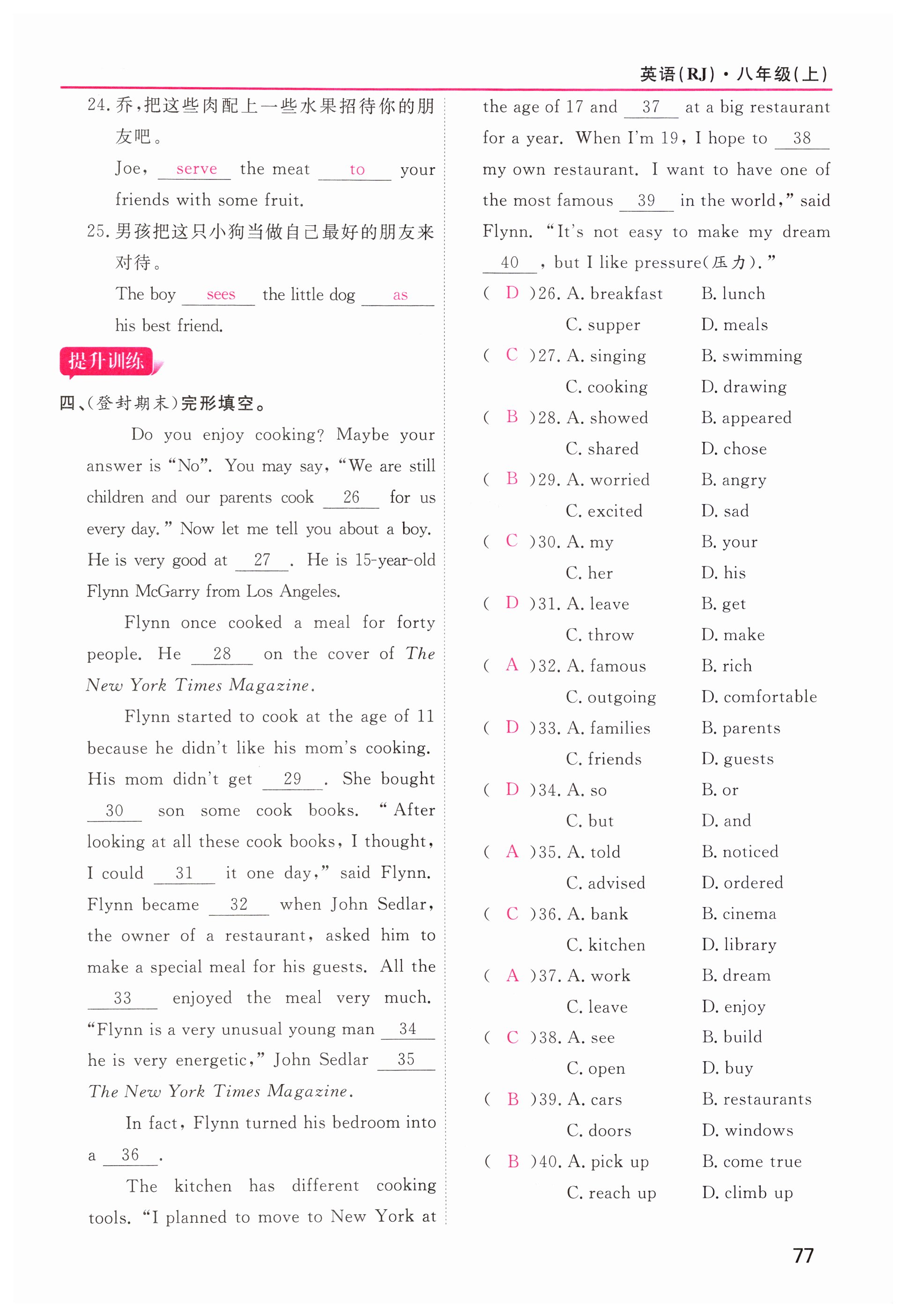 注:目前有些书本章节名称可能整理的还不是很完善,但都是按照顺序排列的,请同学们按照顺序仔细查找。练习册 2023年我的作业八年级英语上册人教版河南专版 答案主要是用来给同学们做完题方便对答案用的,请勿直接抄袭。