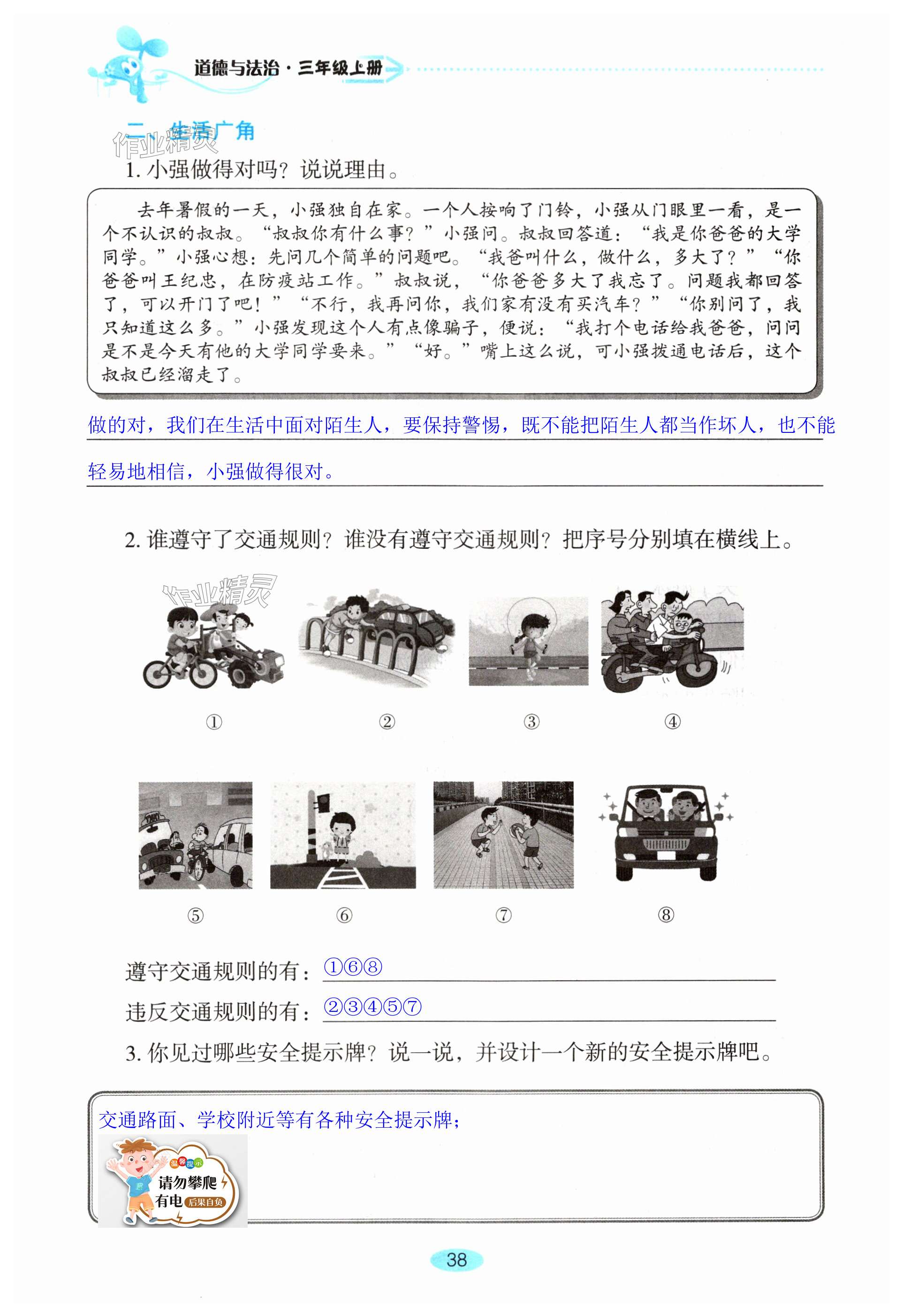 注:目前有些书本章节名称可能整理的还不是很完善,但都是按照顺序排列的,请同学们按照顺序仔细查找。练习册 2023年自主学习指导课程三年级道德与法治上册人教版 答案主要是用来给同学们做完题方便对答案用的,请勿直接抄袭。