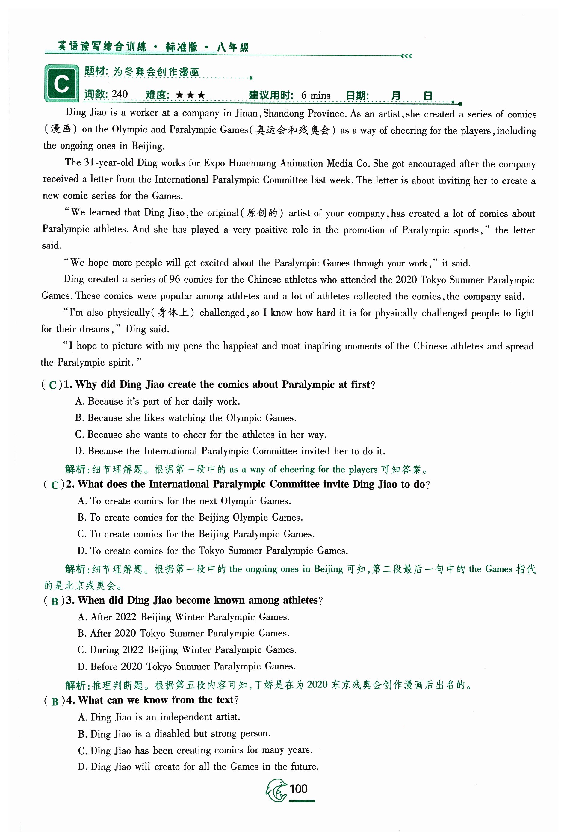 注:目前有些书本章节名称可能整理的还不是很完善,但都是按照顺序排列的,请同学们按照顺序仔细查找。练习册 2023年激情英语读写综合训练八年级英语福建专版 答案主要是用来给同学们做完题方便对答案用的,请勿直接抄袭。