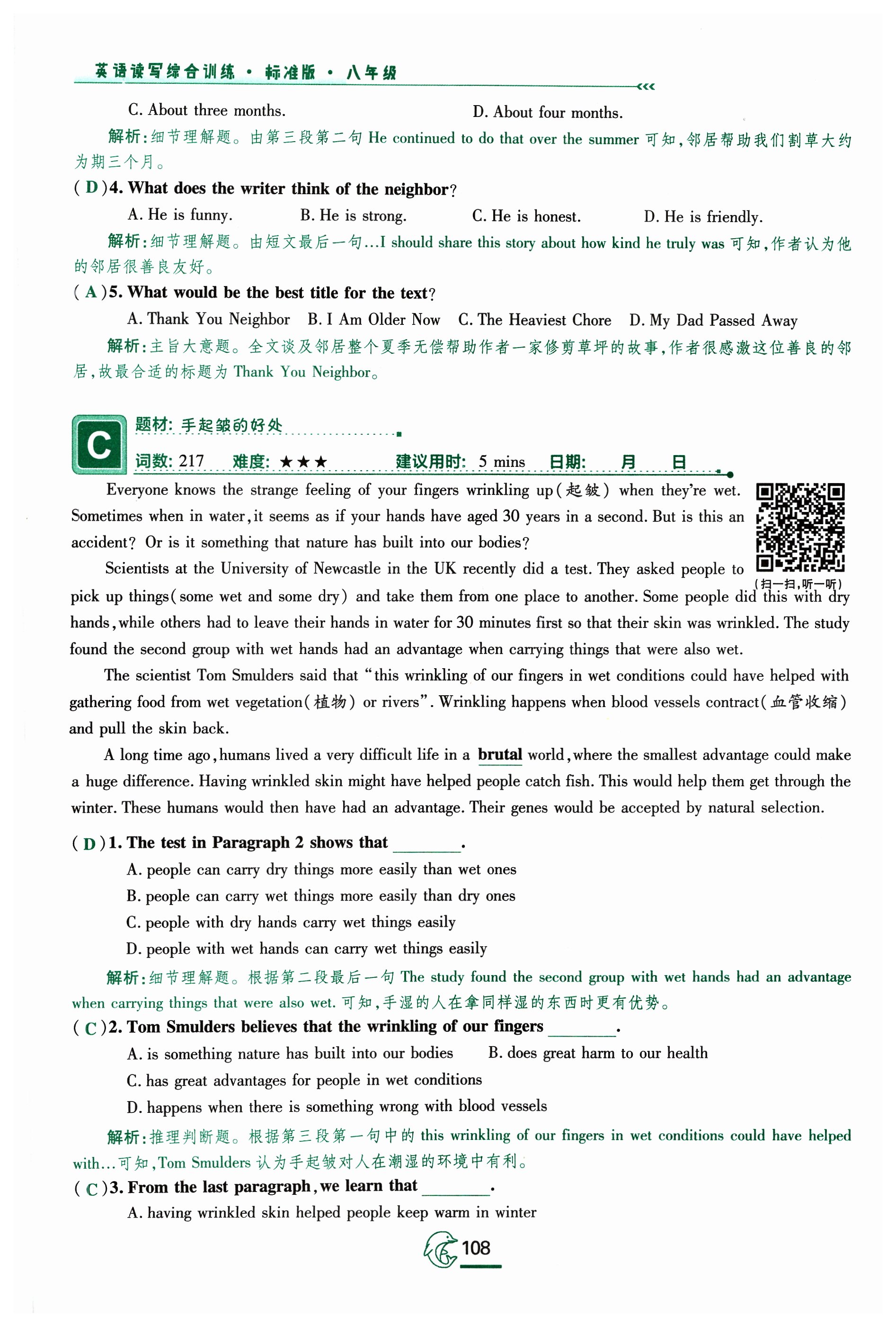 注:目前有些书本章节名称可能整理的还不是很完善,但都是按照顺序排列的,请同学们按照顺序仔细查找。练习册 2023年激情英语读写综合训练八年级英语福建专版 答案主要是用来给同学们做完题方便对答案用的,请勿直接抄袭。