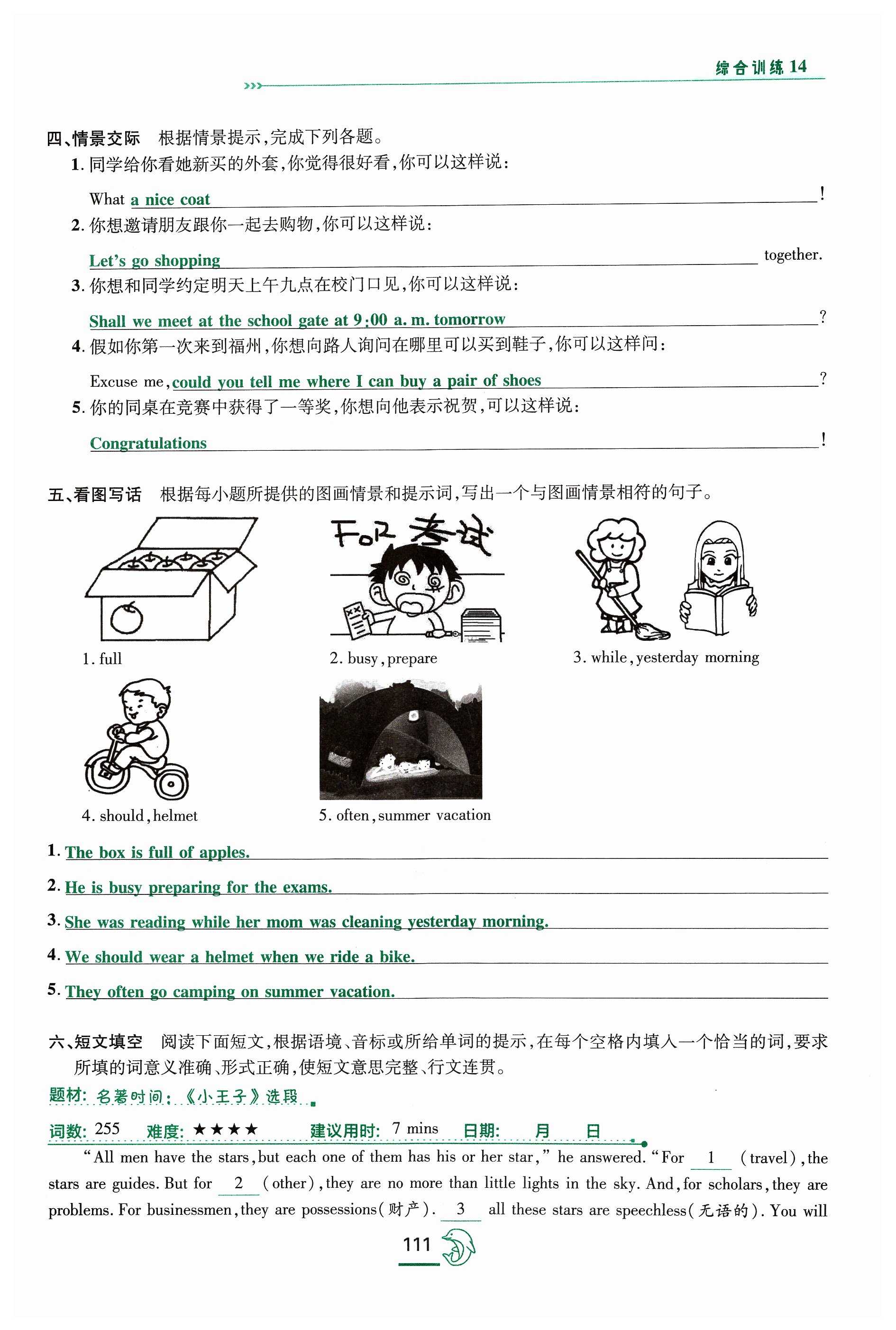 注:目前有些书本章节名称可能整理的还不是很完善,但都是按照顺序排列的,请同学们按照顺序仔细查找。练习册 2023年激情英语读写综合训练八年级英语福建专版 答案主要是用来给同学们做完题方便对答案用的,请勿直接抄袭。