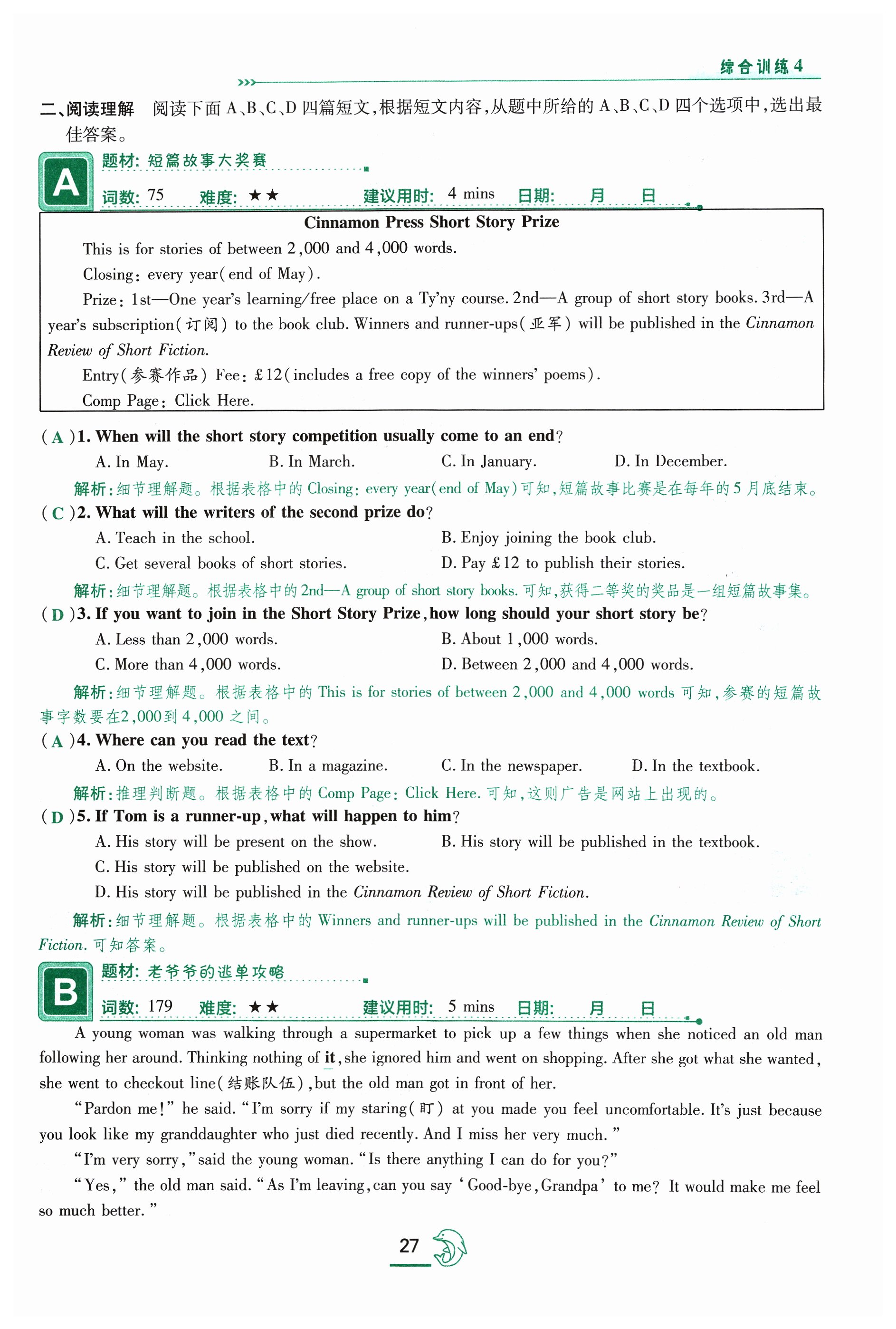 注:目前有些书本章节名称可能整理的还不是很完善,但都是按照顺序排列的,请同学们按照顺序仔细查找。练习册 2023年激情英语读写综合训练八年级英语福建专版 答案主要是用来给同学们做完题方便对答案用的,请勿直接抄袭。