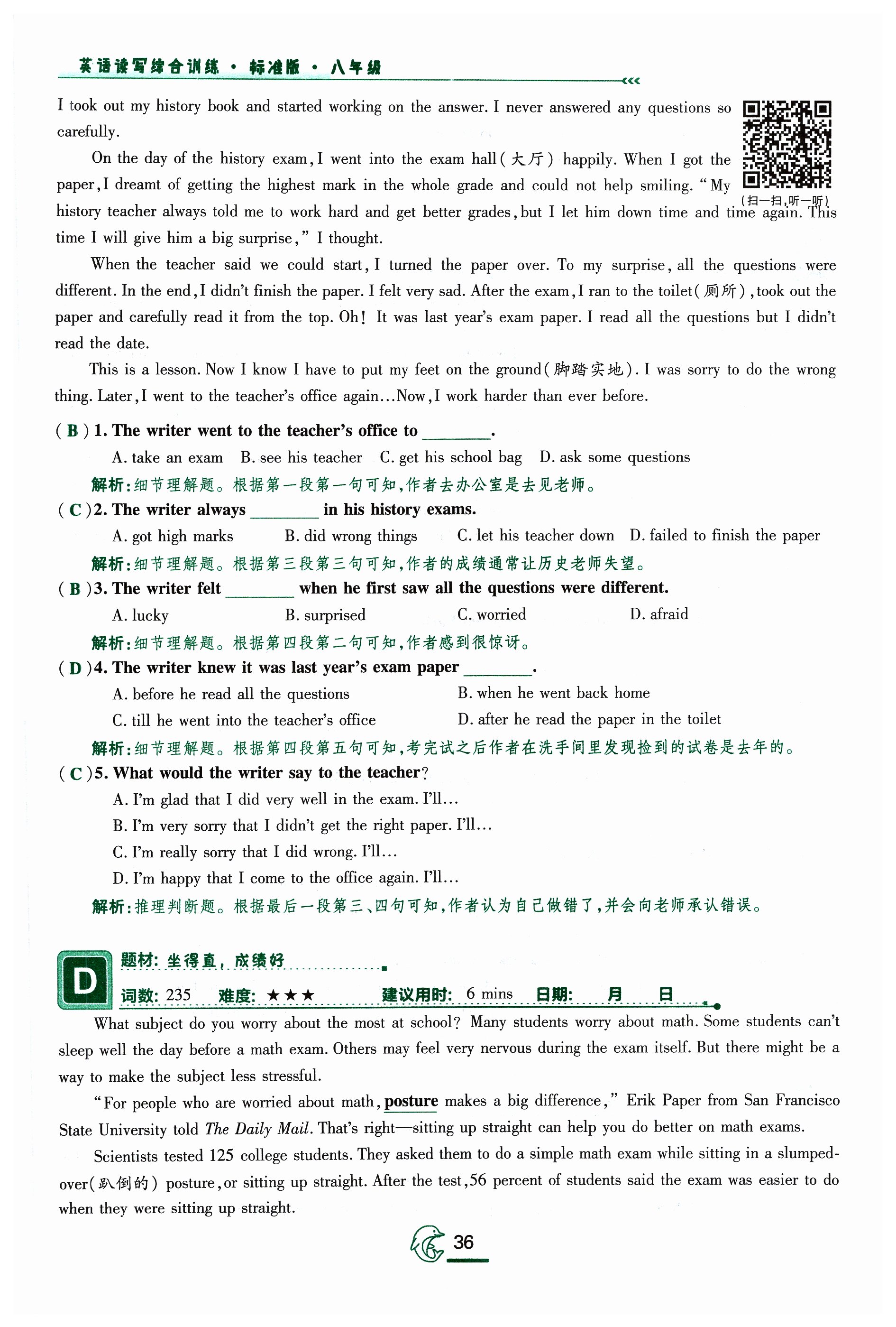 注:目前有些书本章节名称可能整理的还不是很完善,但都是按照顺序排列的,请同学们按照顺序仔细查找。练习册 2023年激情英语读写综合训练八年级英语福建专版 答案主要是用来给同学们做完题方便对答案用的,请勿直接抄袭。