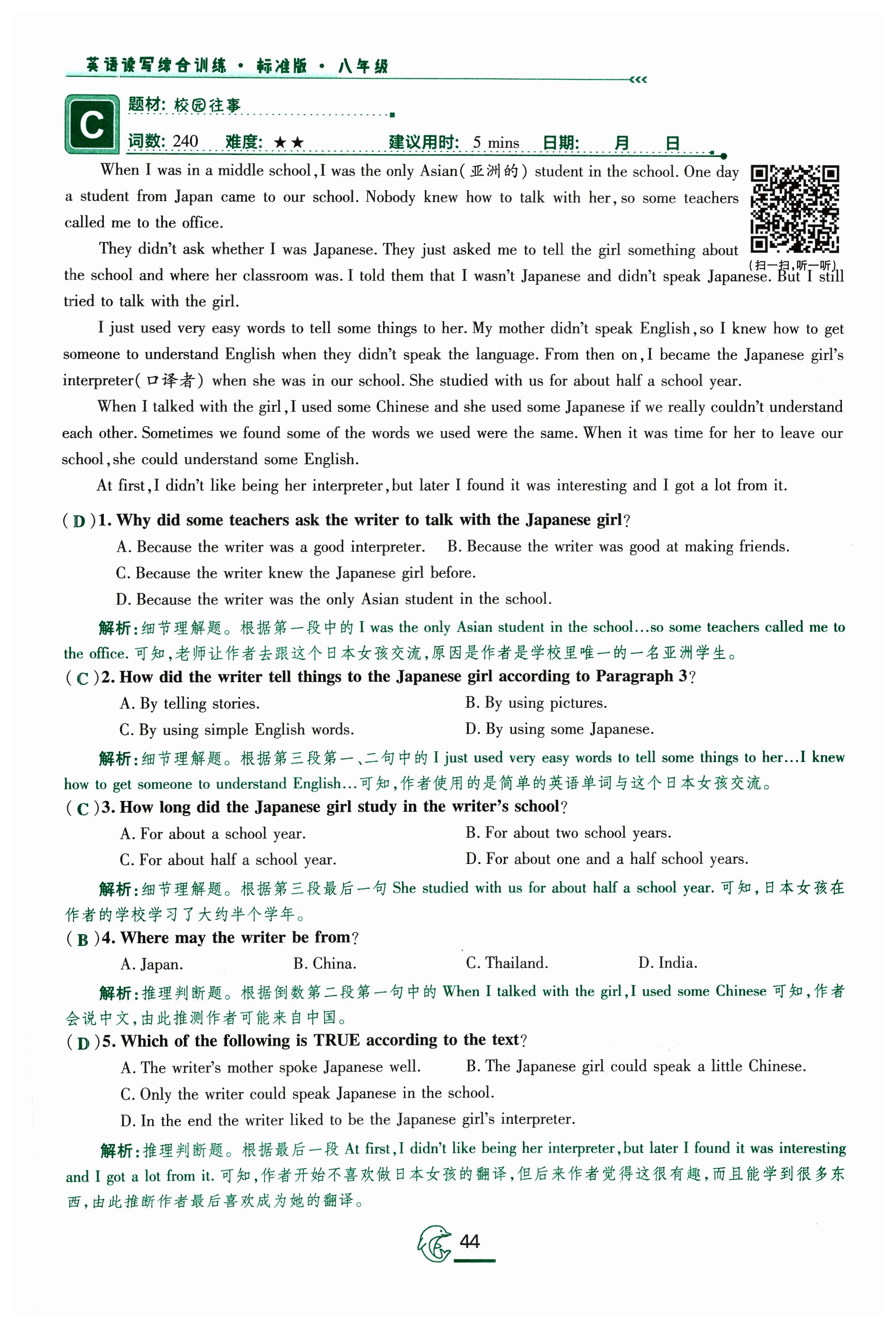 注:目前有些书本章节名称可能整理的还不是很完善,但都是按照顺序排列的,请同学们按照顺序仔细查找。练习册 2023年激情英语读写综合训练八年级英语福建专版 答案主要是用来给同学们做完题方便对答案用的,请勿直接抄袭。