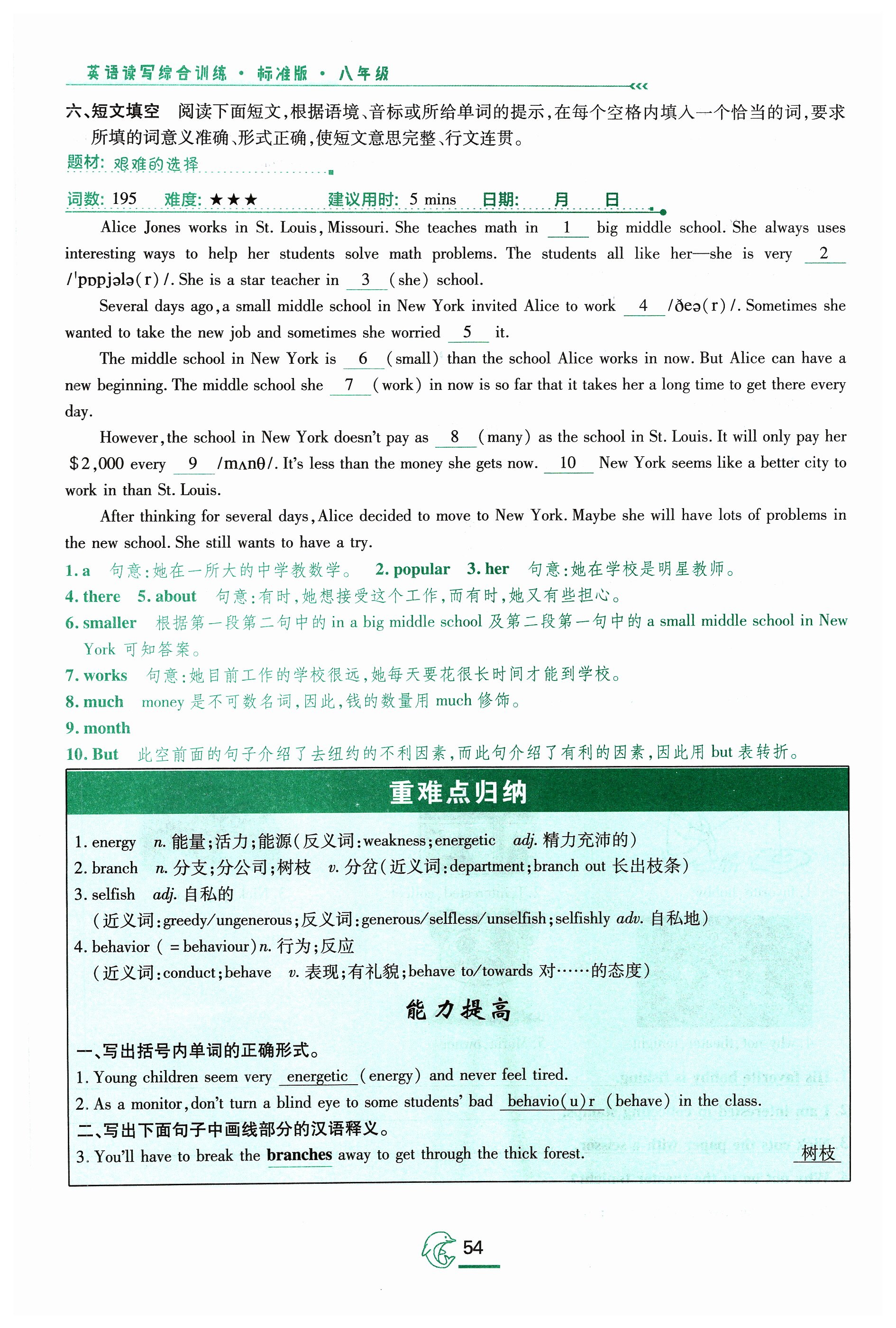 注:目前有些书本章节名称可能整理的还不是很完善,但都是按照顺序排列的,请同学们按照顺序仔细查找。练习册 2023年激情英语读写综合训练八年级英语福建专版 答案主要是用来给同学们做完题方便对答案用的,请勿直接抄袭。