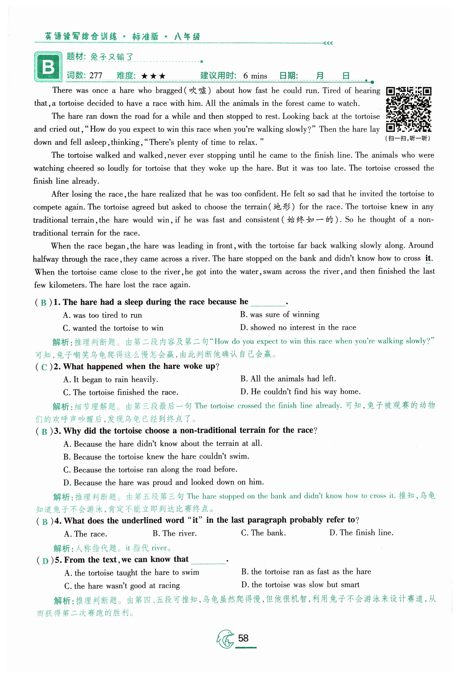注:目前有些书本章节名称可能整理的还不是很完善,但都是按照顺序排列的,请同学们按照顺序仔细查找。练习册 2023年激情英语读写综合训练八年级英语福建专版 答案主要是用来给同学们做完题方便对答案用的,请勿直接抄袭。