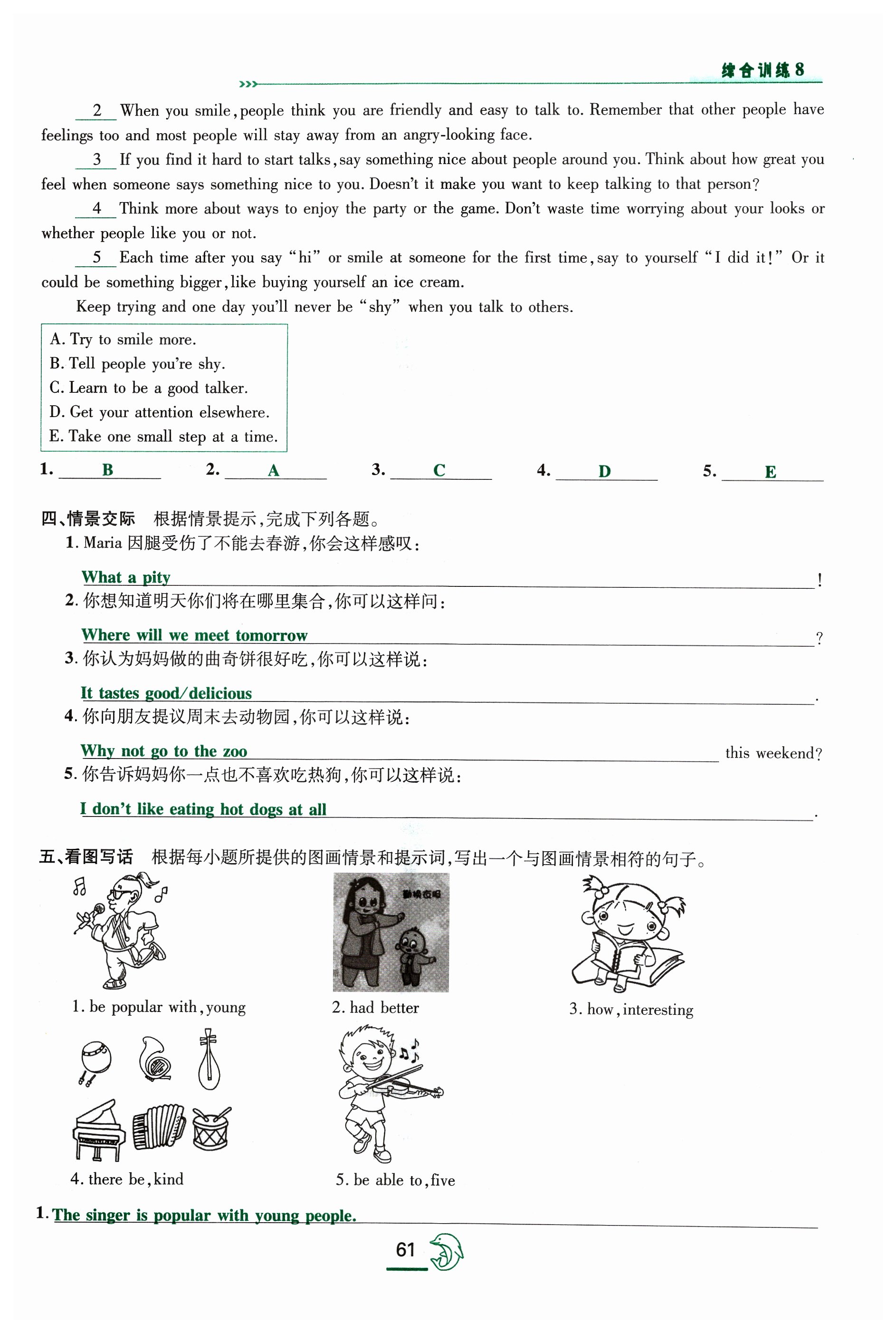 注:目前有些书本章节名称可能整理的还不是很完善,但都是按照顺序排列的,请同学们按照顺序仔细查找。练习册 2023年激情英语读写综合训练八年级英语福建专版 答案主要是用来给同学们做完题方便对答案用的,请勿直接抄袭。