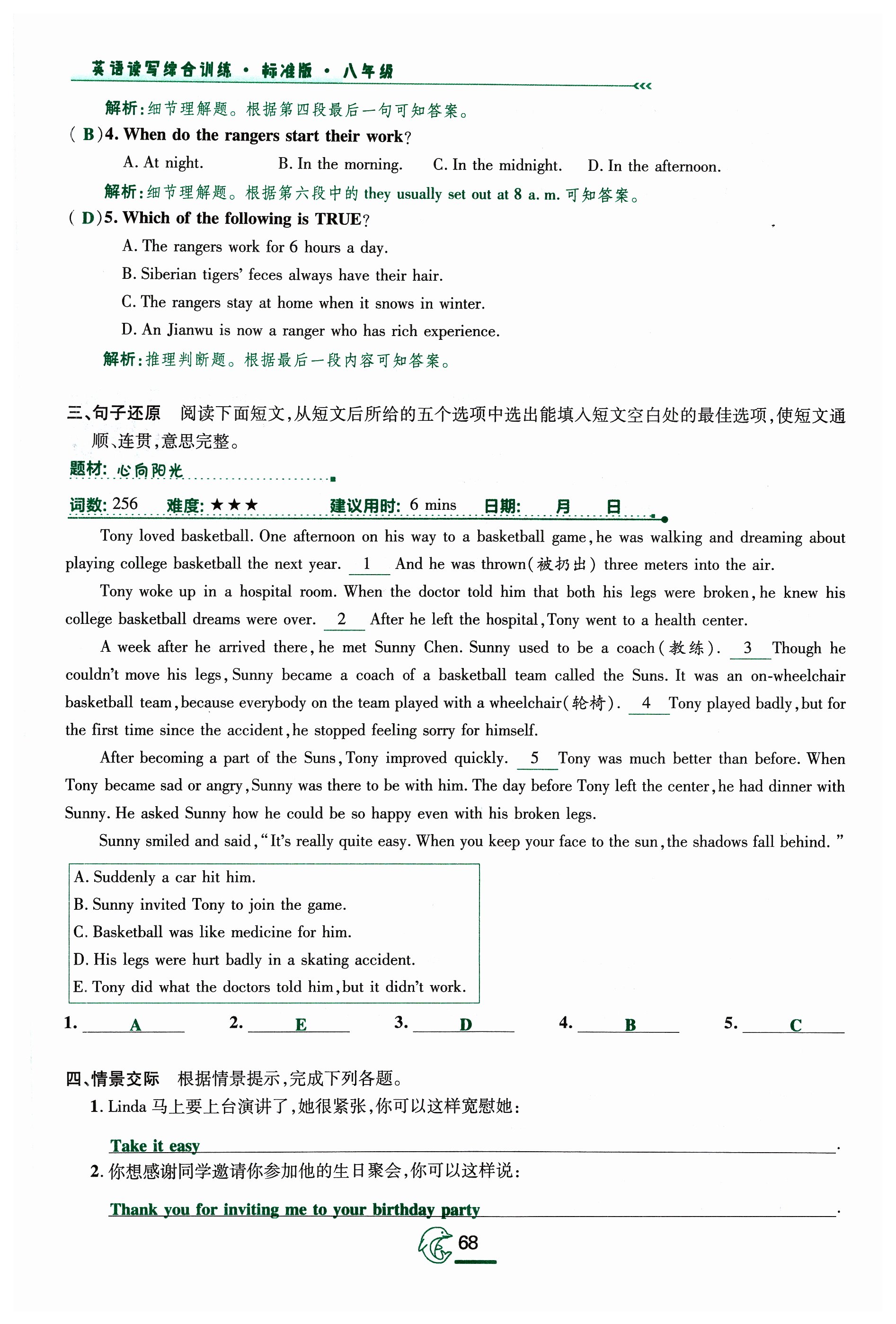 注:目前有些书本章节名称可能整理的还不是很完善,但都是按照顺序排列的,请同学们按照顺序仔细查找。练习册 2023年激情英语读写综合训练八年级英语福建专版 答案主要是用来给同学们做完题方便对答案用的,请勿直接抄袭。
