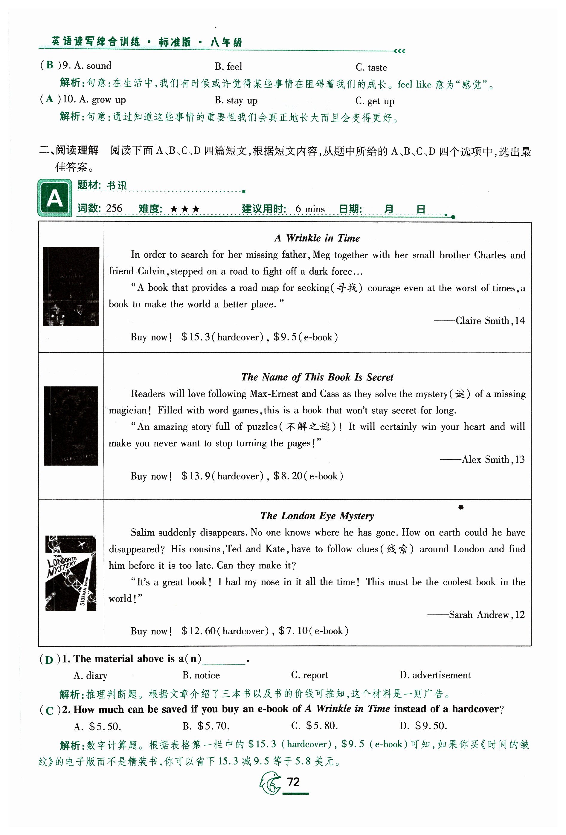 注:目前有些书本章节名称可能整理的还不是很完善,但都是按照顺序排列的,请同学们按照顺序仔细查找。练习册 2023年激情英语读写综合训练八年级英语福建专版 答案主要是用来给同学们做完题方便对答案用的,请勿直接抄袭。