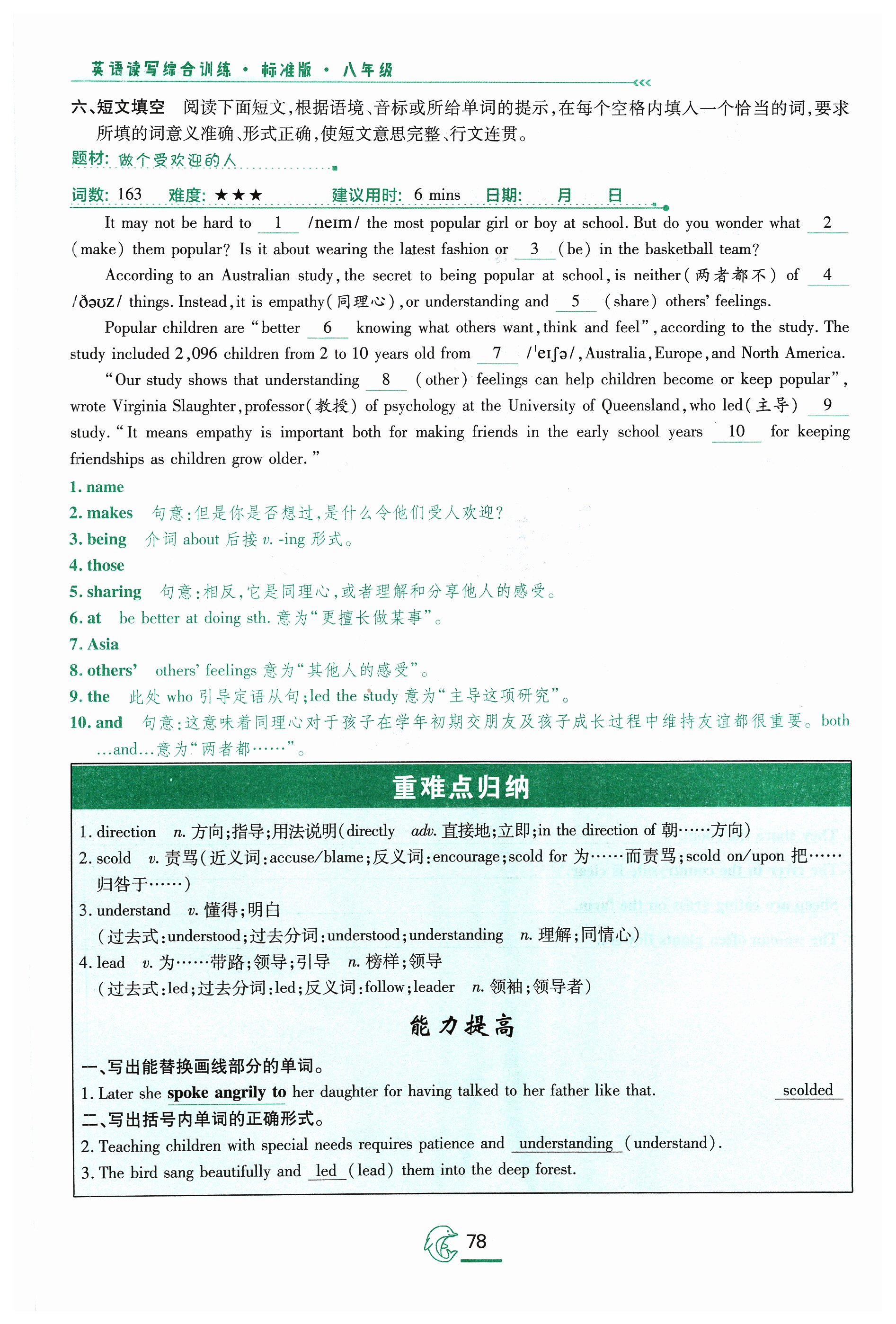 注:目前有些书本章节名称可能整理的还不是很完善,但都是按照顺序排列的,请同学们按照顺序仔细查找。练习册 2023年激情英语读写综合训练八年级英语福建专版 答案主要是用来给同学们做完题方便对答案用的,请勿直接抄袭。